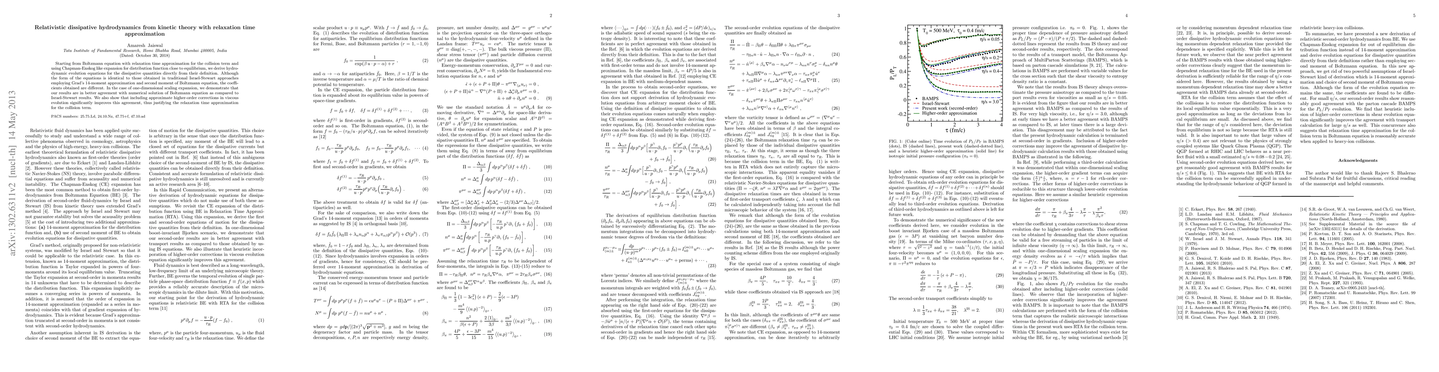 This paper derives relativistic dissipative hydrodynamic equations from kinetic theory using the relaxation time approximation and Chapman-Enskog expansion, showing better agreement with Boltzmann equation numerical solutions compared to the Israel-Stewart approach. The inclusion of higher-order viscous corrections further enhances this agreement.