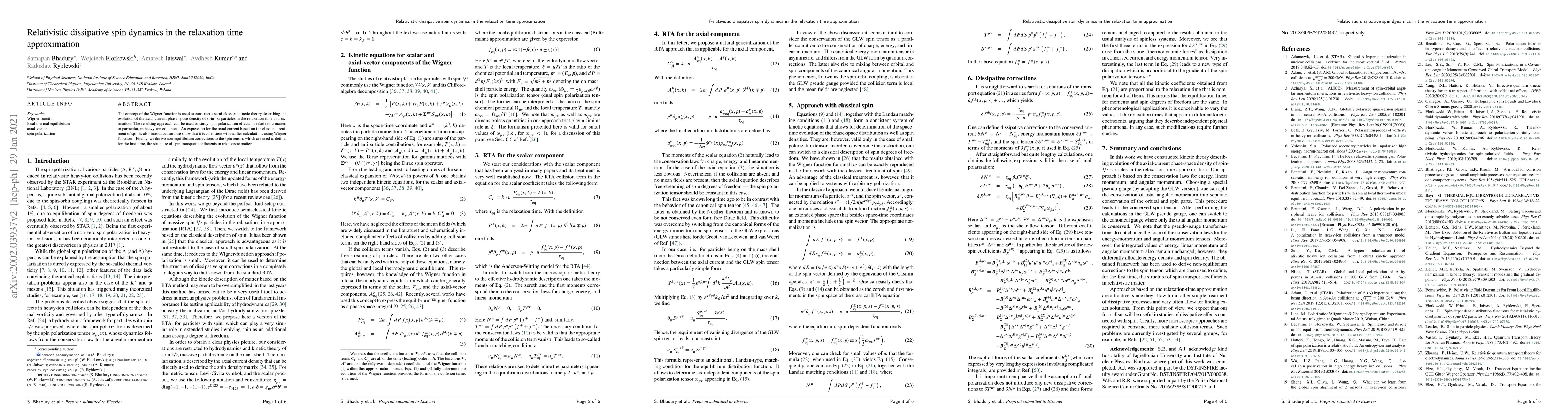 This paper develops a semi-classical kinetic theory using the Wigner function to describe the evolution of spin-1/2 particles' axial-current phase-space density in relativistic matter, particularly in heavy-ion collisions. It also introduces non-equilibrium corrections to the spin tensor, defining spin transport coefficients for the first time.