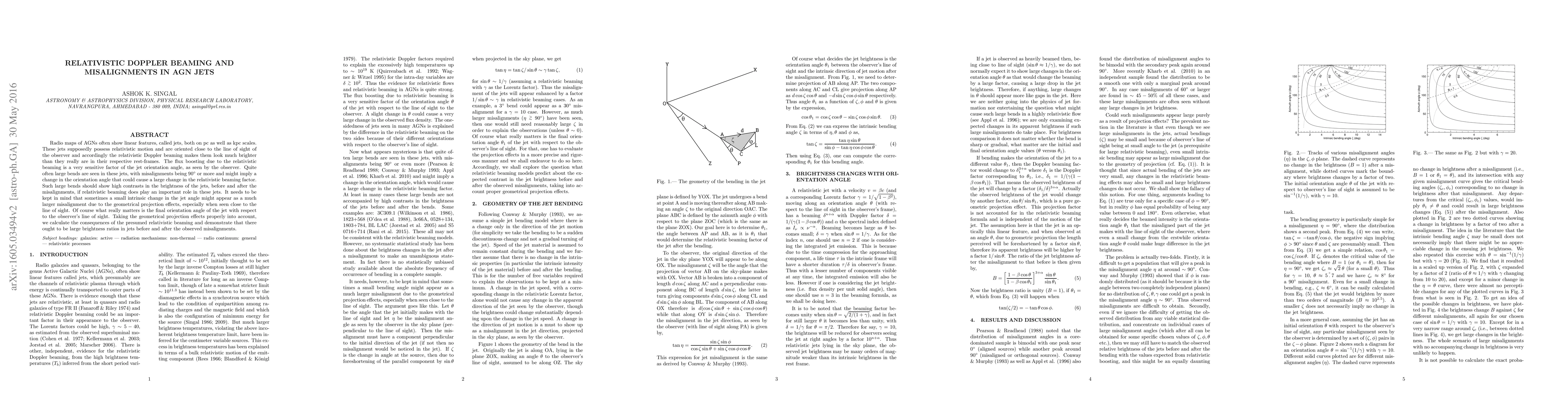 This paper investigates how relativistic Doppler beaming affects the brightness of AGN jets, particularly focusing on the impact of misalignments. It concludes that significant bends in jets, especially those exceeding $90^\circ$, should result in large brightness contrasts due to changes in the relativistic beaming factor, provided the jets' orientation angles relative to the observer's line of sight are considered.