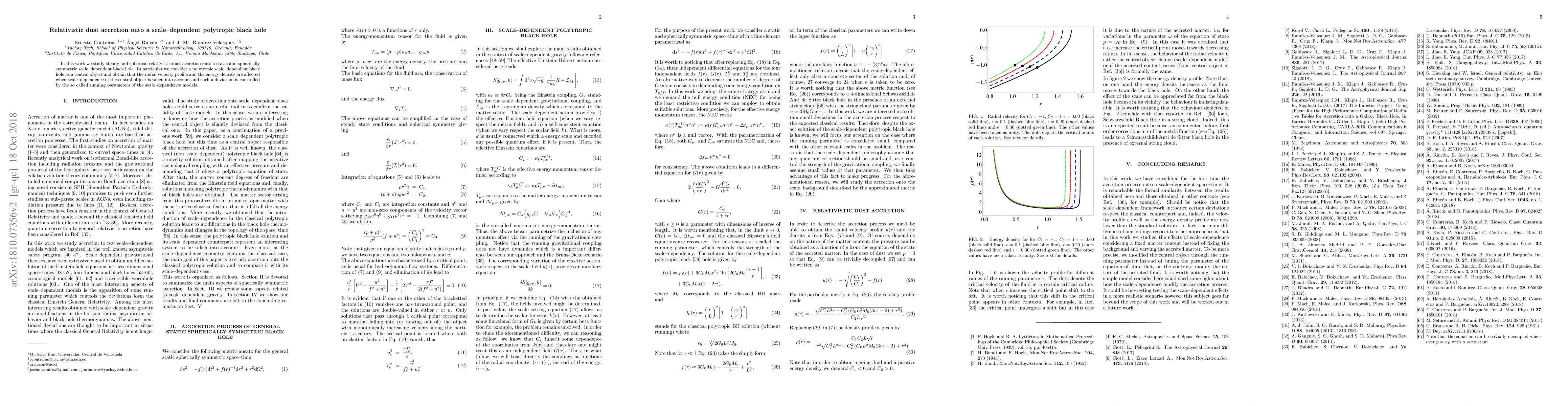 In this work we study steady and spherical relativistic dust accretion onto a static and spherically symmetric scale--dependent black hole. In particular we consider a polytropic scale--dependent black hole as a central object and obtain that the radial velocity profile and the energy density are affected when scale--dependence of the central object is taken into account and such a deviation is controlled by the so called running parameters of the scale--dependence models.