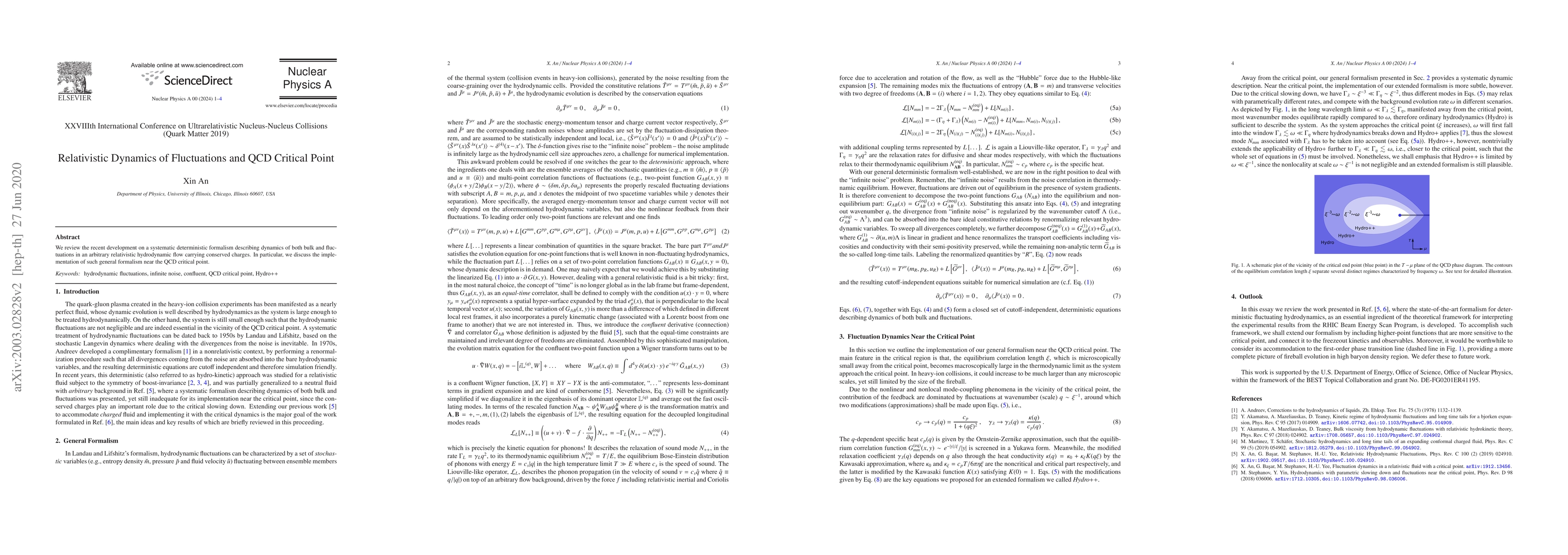 We review the recent development on a systematic deterministic formalism describing dynamics of both bulk and fluctuations in an arbitrary relativistic hydrodynamic flow carrying conserved charges. In particular, we discuss the implementation of such general formalism near the QCD critical point.