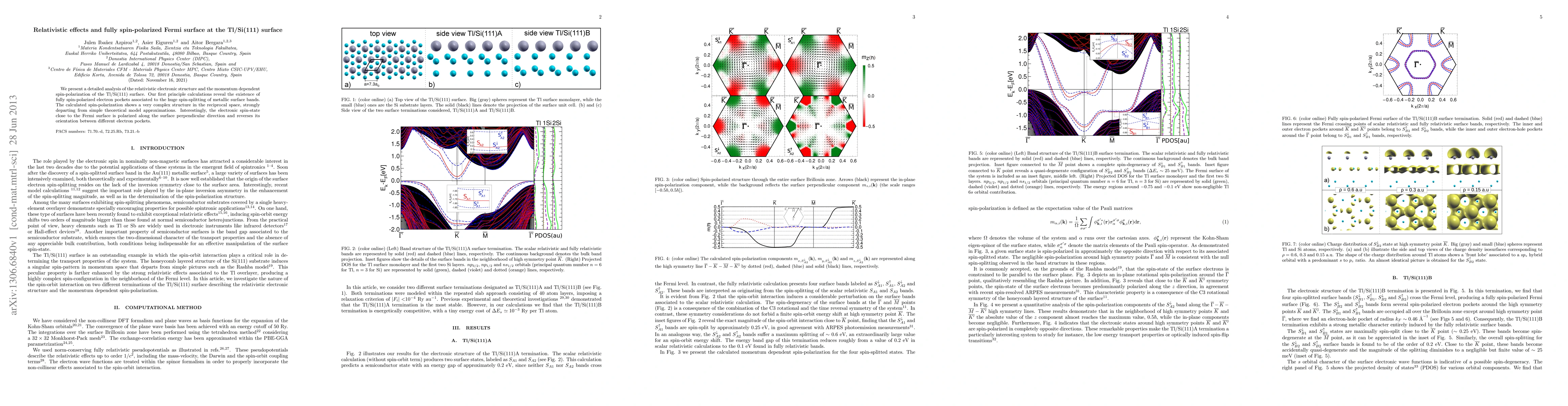 The Tl/Si(111) surface exhibits fully spin-polarized electron pockets with complex spin structures, revealing a nuanced understanding of relativistic effects in the Fermi surface.