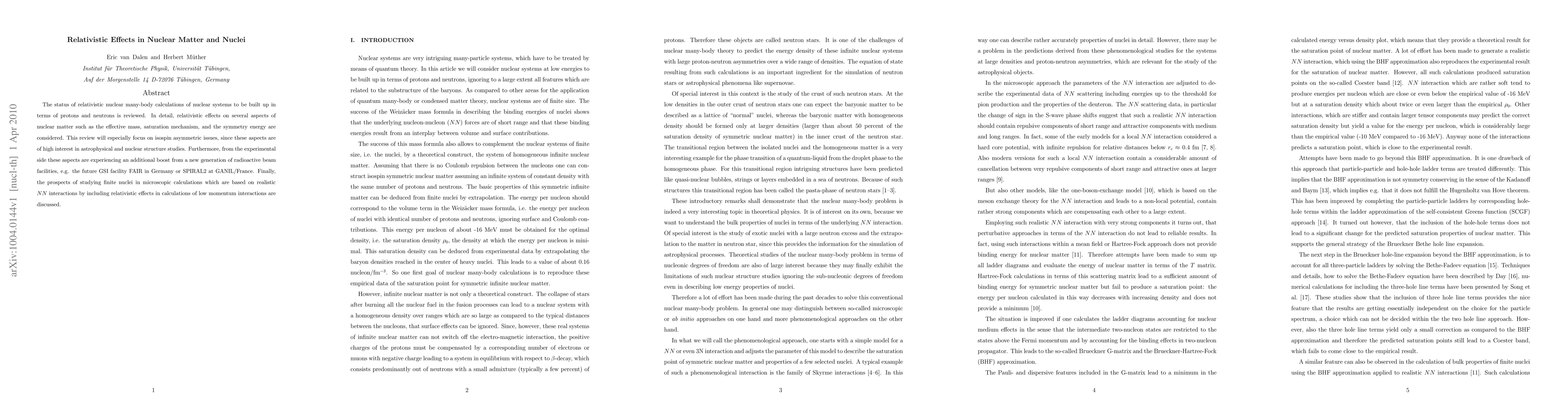 The status of relativistic nuclear many-body calculations of nuclear systems to be built up in terms of protons and neutrons is reviewed. In detail, relativistic effects on several aspects of nuclear matter such as the effective mass, saturation mechanism, and the symmetry energy are considered. This review will especially focus on isospin asymmetric issues, since these aspects are of high interest in astrophysical and nuclear structure studies. Furthermore, from the experimental side these aspects are experiencing an additional boost from a new generation of radioactive beam facilities, e.g. the future GSI facility FAIR in Germany or SPIRAL2 at GANIL/France. Finally, the prospects of studying finite nuclei in microscopic calculations which are based on realistic $NN$ interactions by including relativistic effects in calculations of low momentum interactions are discussed.
