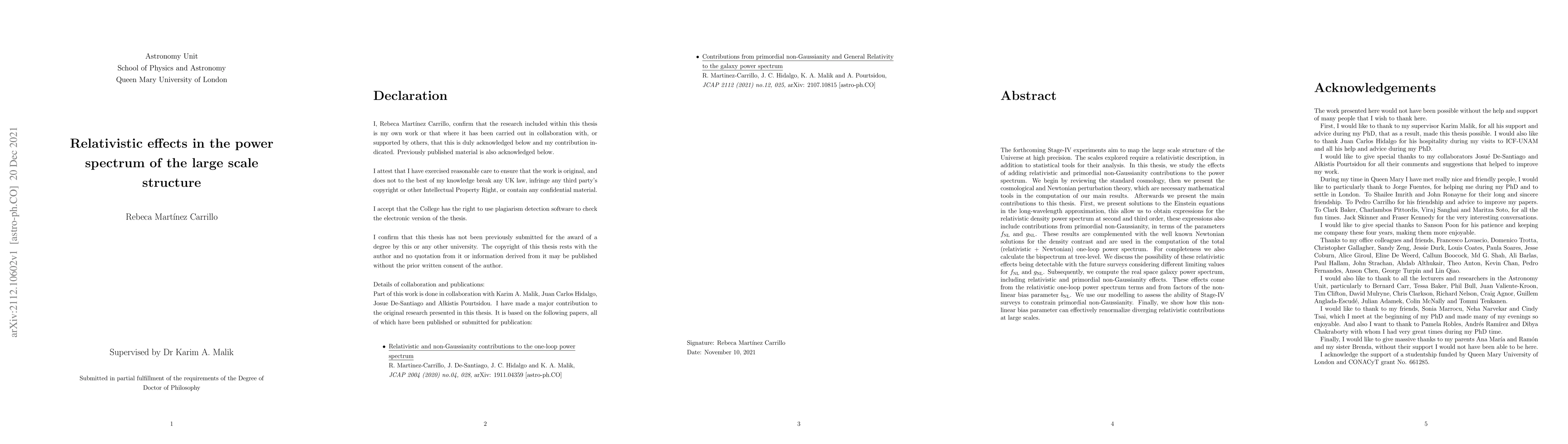 This paper investigates the relativistic effects and primordial non-Gaussianity contributions in the power spectrum of the large scale structure of the Universe, providing solutions to the Einstein equations and computing the relativistic density power spectrum at second and third order. It assesses the detectability of these effects in future surveys and evaluates the ability of Stage-IV experiments to constrain primordial non-Gaussianity.