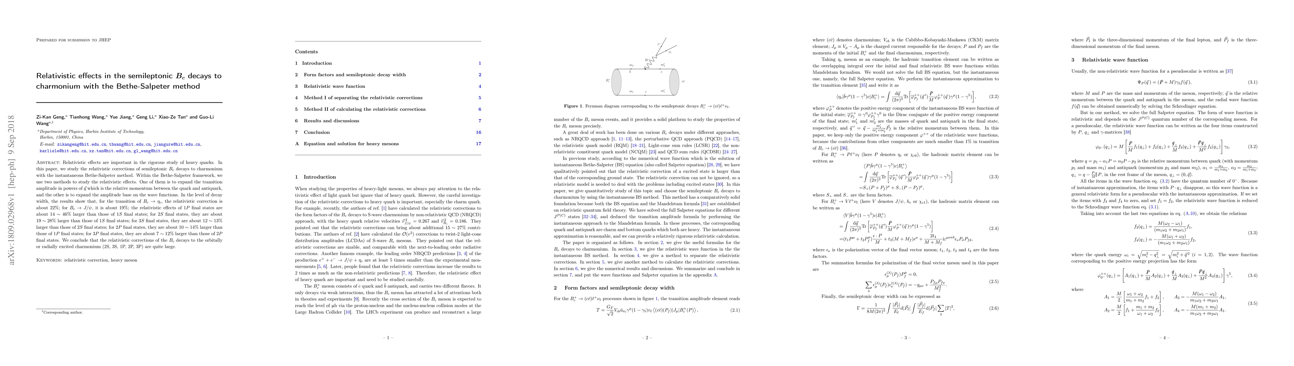 This paper investigates relativistic corrections in semileptonic $B_c$ decays to charmonium using the Bethe-Salpeter method, revealing significant relativistic effects: $B_c\to \eta_c$ has a $22\%$ correction, $B_c\to J/\psi$ a $19\%$ correction, and higher orbital states show progressively larger corrections compared to $1S$ states.