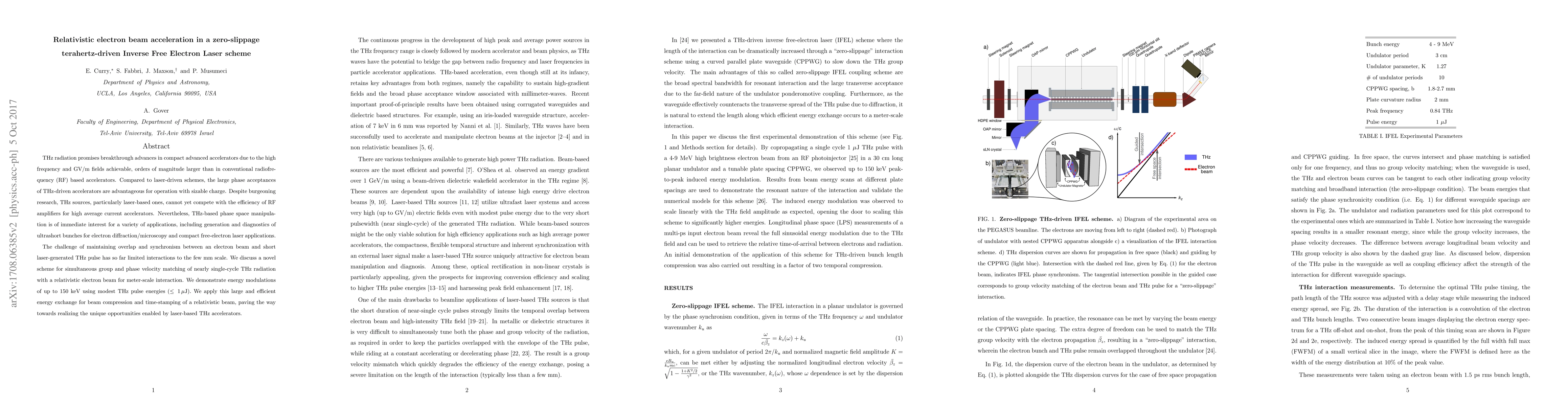 This paper proposes a novel terahertz-driven inverse free electron laser scheme for relativistic electron beam acceleration, achieving meter-scale interactions through synchronized group and phase velocity matching of THz radiation with the electron beam. The method demonstrates significant energy modulations and potential for beam compression and time-stamping, advancing the feasibility of compact, high-efficiency accelerators.
