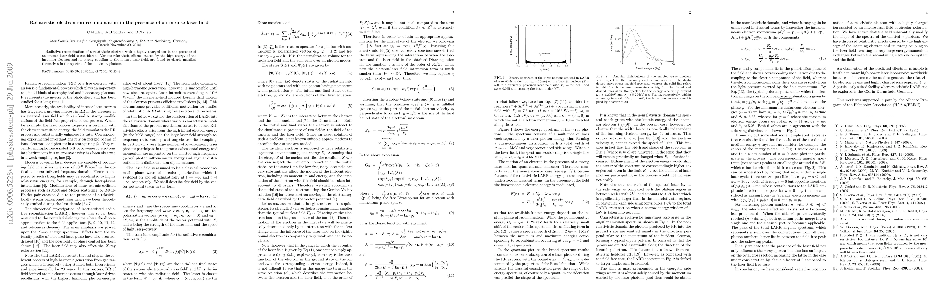 Summary: The study investigates radiative recombination of relativistic electrons with highly charged ions under intense laser fields, revealing significant relativistic effects in the emitted gamma-photon spectra due to high electron energy and strong laser coupling.