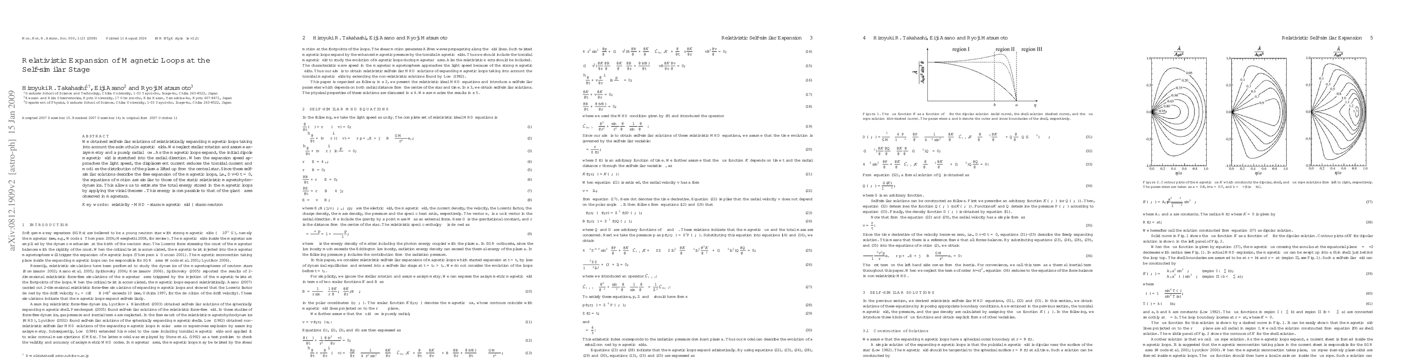 This paper presents self-similar solutions for relativistically expanding magnetic loops, focusing on the azimuthal magnetic fields and radial flow. The study estimates the total energy stored in these loops, which is comparable to the energy of giant flares observed in magnetars.