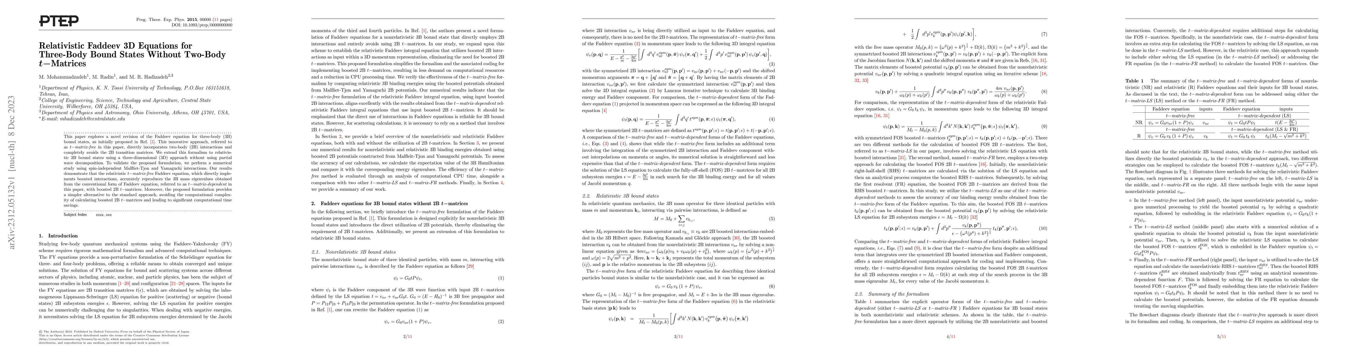 This paper explores a novel revision of the Faddeev equation for three-body (3B) bound states, as initially proposed in Ref. \cite{golak2013three}. This innovative approach, referred to as \tmatrixfree in this paper, directly incorporates two-body (2B) interactions and completely avoids the 2B transition matrices. We extend this formalism to relativistic 3B bound states using a three-dimensional (3D) approach without using partial wave decomposition. To validate the proposed formulation, we perform a numerical study using spin-independent Malfliet-Tjon and Yamaguchi interactions. Our results demonstrate that the relativistic \tmatrixfree Faddeev equation, which directly implements boosted interactions, accurately reproduces the 3B mass eigenvalues obtained from the conventional form of Faddeev equation, referred to as \tmatrixdependent in this paper, with boosted 2B $t-$matrices. Moreover, the proposed formulation provides a simpler alternative to the standard approach, avoiding the computational complexity of calculating boosted 2B $t-$matrices and leading to significant computational time savings.