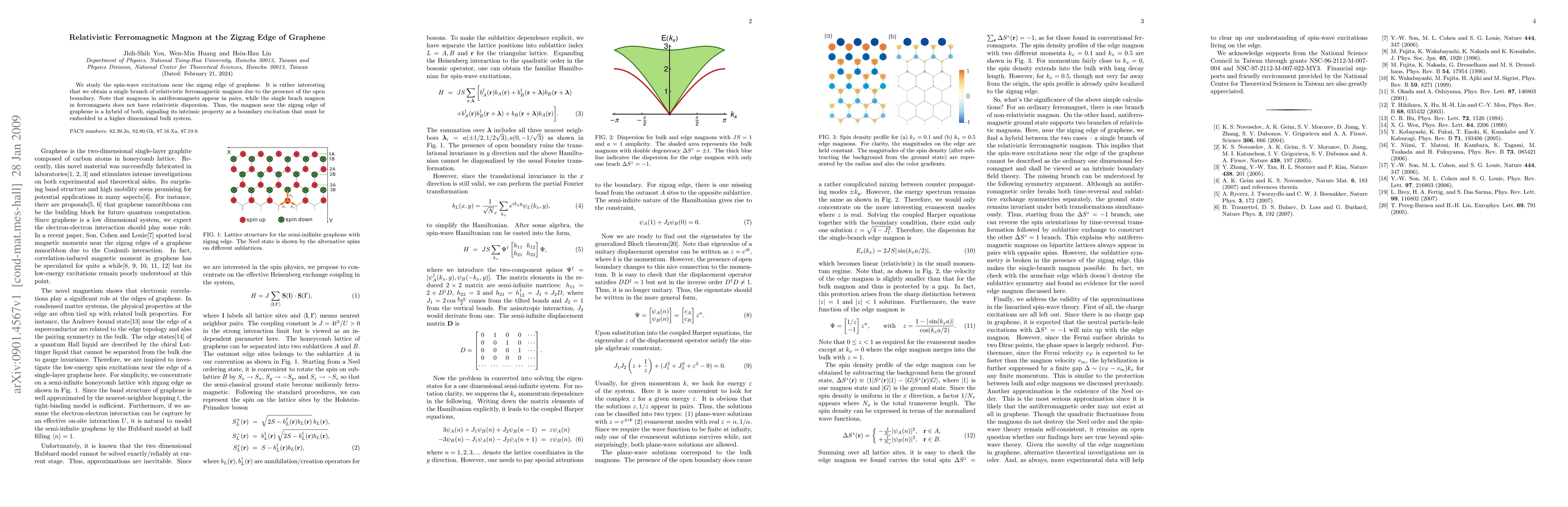 We study the spin-wave excitations near the zigzag edge of graphene. It is rather interesting that we obtain a single branch of relativistic ferromagnetic magnon due to the presence of the open boundary. Note that magnons in antiferomagnets appear in pairs, while the single brach magnon in ferromagnets does not have relativistic dispersion. Thus, the magnon near the zigzag edge of graphene is a hybrid of both, signaling its intrinsic property as a boundary excitation that must be embedded in a higher dimensional bulk system.