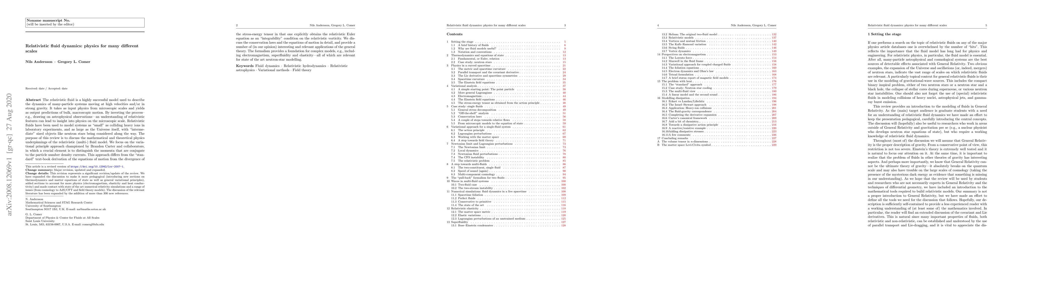 The relativistic fluid is a highly successful model used to describe the dynamics of many-particle systems moving at high velocities and/or in strong gravity. It takes as input physics from microscopic scales and yields as output predictions of bulk, macroscopic motion. By inverting the process-e.g., drawing on astrophysical observations-an understanding of relativistic features can lead to insight into physics on the microscopic scale. Relativistic fluids have been used to model systems as "small" as colliding heavy ions in laboratory experiments, and as large as the Universe itself, with "intermediate" sized objects like neutron stars being considered along the way. The purpose of this review is to discuss the mathematical and theoretical physics underpinnings of the relativistic (multi-) fluid model. We focus on the variational principle approach championed by Brandon Carter and collaborators, in which a crucial element is to distinguish the momenta that are conjugate to the particle number density currents. This approach differs from the "standard" text-book derivation of the equations of motion from the divergence of the stress-energy tensor in that one explicitly obtains the relativistic Euler equation as an "integrability" condition on the relativistic vorticity. We discuss the conservation laws and the equations of motion in detail, and provide a number of (in our opinion) interesting and relevant applications of the general theory. The formalism provides a foundation for complex models, e.g., including electromagnetism, superfluidity and elasticity-all of which are relevant for state of the art neutron-star modelling.