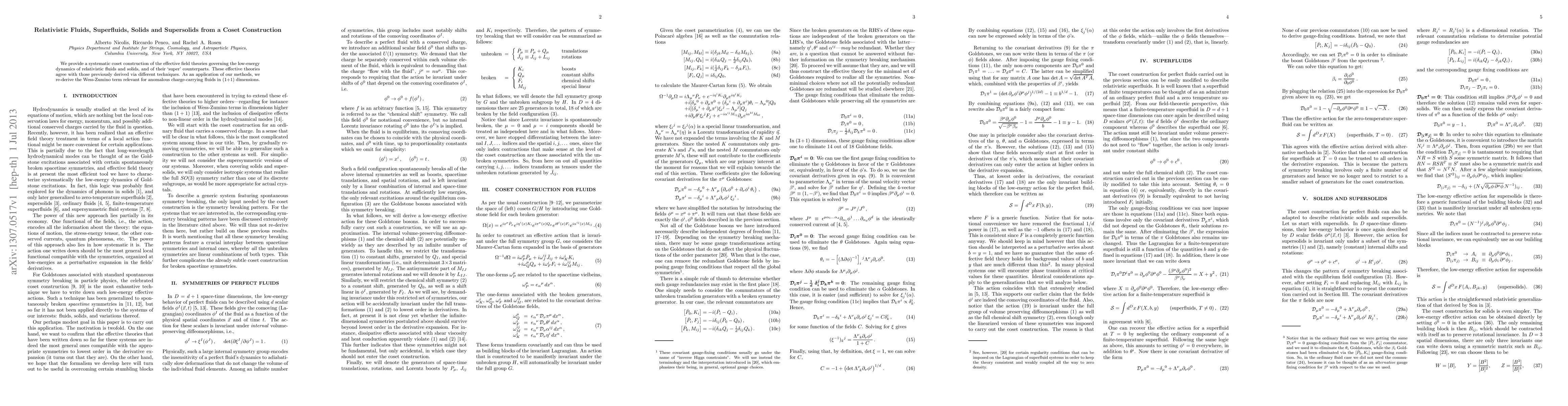 This paper systematically constructs effective field theories using a coset approach for relativistic fluids, solids, and their "super" counterparts, confirming previously derived theories. It also demonstrates the method by re-deriving the Wess-Zumino term for anomalous charge-carrying fluids in (1+1) dimensions.