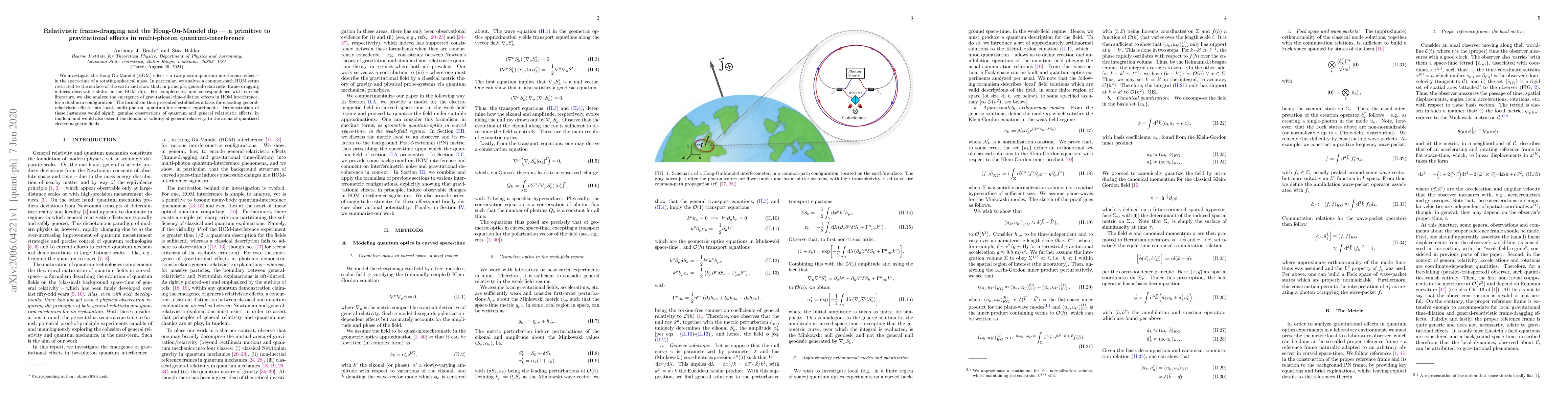This paper investigates how general-relativistic frame-dragging affects a two-photon quantum-interference effect known as the Hong-Ou-Mandel (HOM) dip, potentially demonstrating genuine observations of both quantum and general relativistic effects.