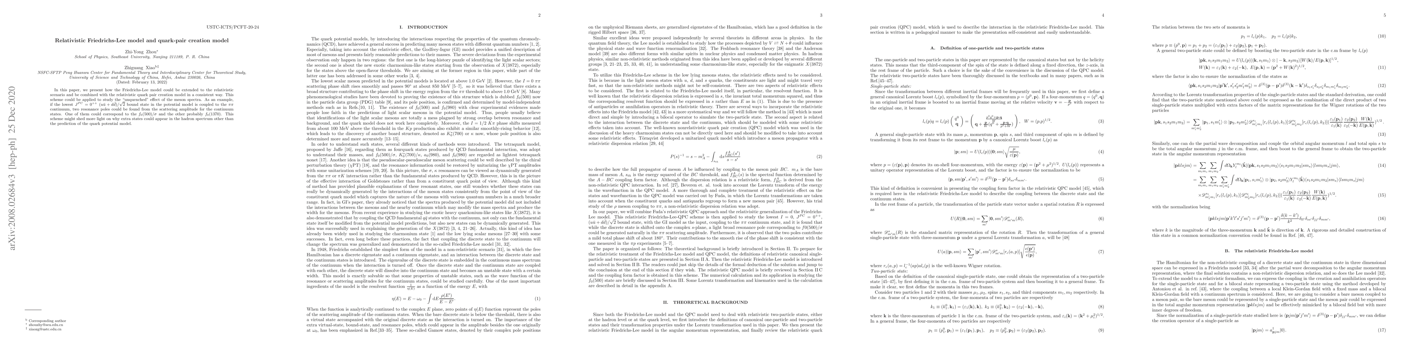 This paper extends the Friedrichs-Lee model to a relativistic framework and integrates it with the relativistic quark pair creation model, aiming to study "unquenched" meson spectra effects. The proposed scheme could explain the appearance of additional states in hadron spectra beyond quark potential model predictions.