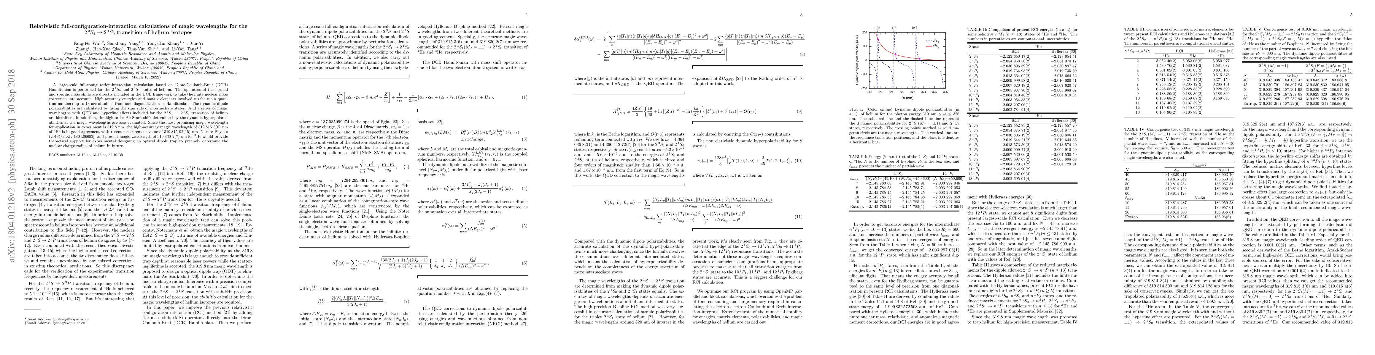 This paper presents relativistic full-configuration-interaction calculations for the $2\,^3S_1\rightarrow2\,^1S_0$ transition in helium isotopes, identifying magic wavelengths with high accuracy and evaluating the high-order AC Stark shift. The study confirms the theoretical magic wavelength of 319.815 nm for $^4$He and 319.830 nm for $^3$He, supporting future experimental designs for precise nuclear charge radius measurements.