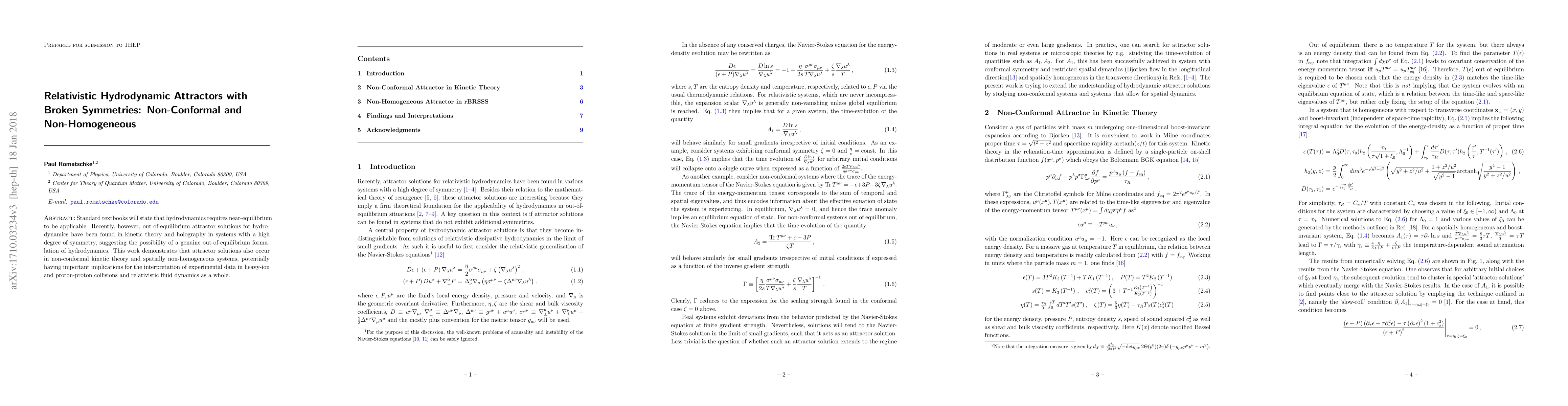 Standard textbooks will state that hydrodynamics requires near-equilibrium to be applicable. Recently, however, out-of-equilibrium attractor solutions for hydrodynamics have been found in kinetic theory and holography in systems with a high degree of symmetry, suggesting the possibility of a genuine out-of-equilibrium formulation of hydrodynamics. This work demonstrates that attractor solutions also occur in non-conformal kinetic theory and spatially non-homogeneous systems, potentially having important implications for the interpretation of experimental data in heavy-ion and proton-proton collisions and relativistic fluid dynamics as a whole.