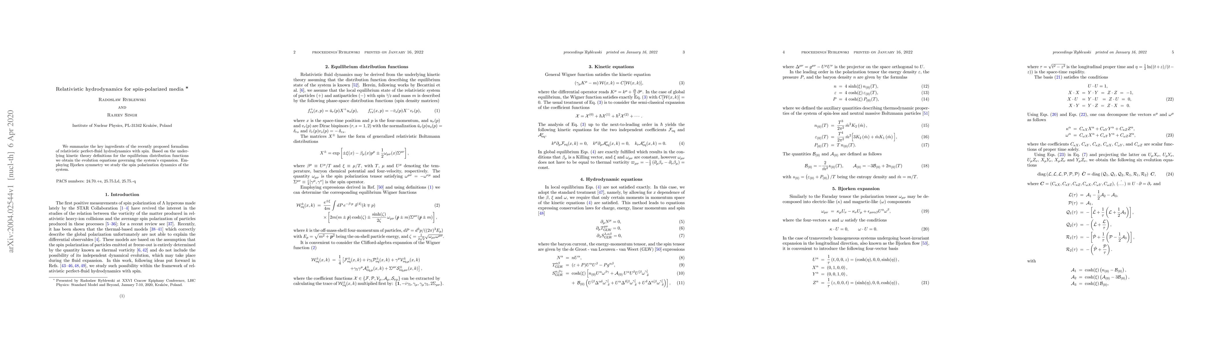 This paper proposes a formalism for relativistic perfect-fluid hydrodynamics that incorporates spin-polarized media, deriving evolution equations from kinetic theory definitions and analyzing spin polarization dynamics under Bjorken symmetry.