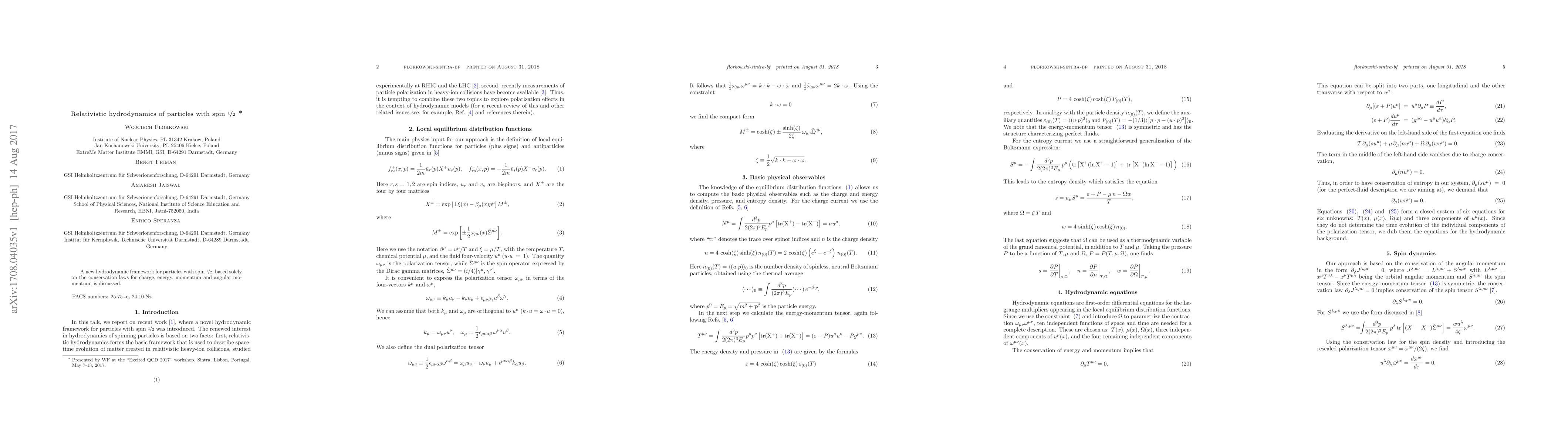 A new hydrodynamic framework for particles with spin 1/2, based solely on the conservation laws for charge, energy, momentum and angular momentum, is discussed.