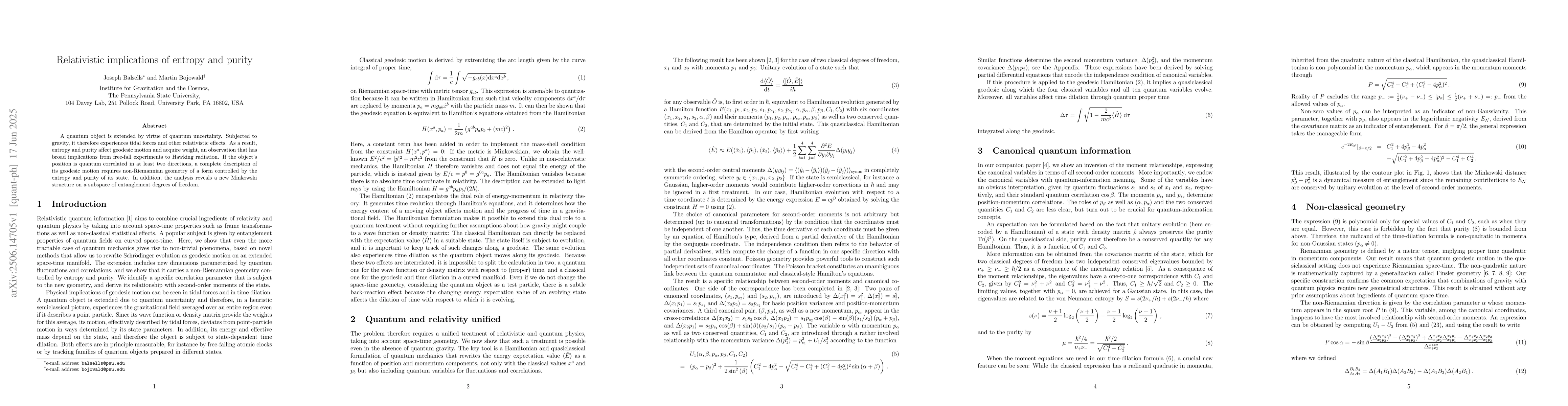 The research explores how quantum entropy and purity, influenced by gravity, impact geodesic motion, necessitating non-Riemannian geometry for a full description. It also uncovers a novel Minkowski structure within entanglement degrees of freedom.