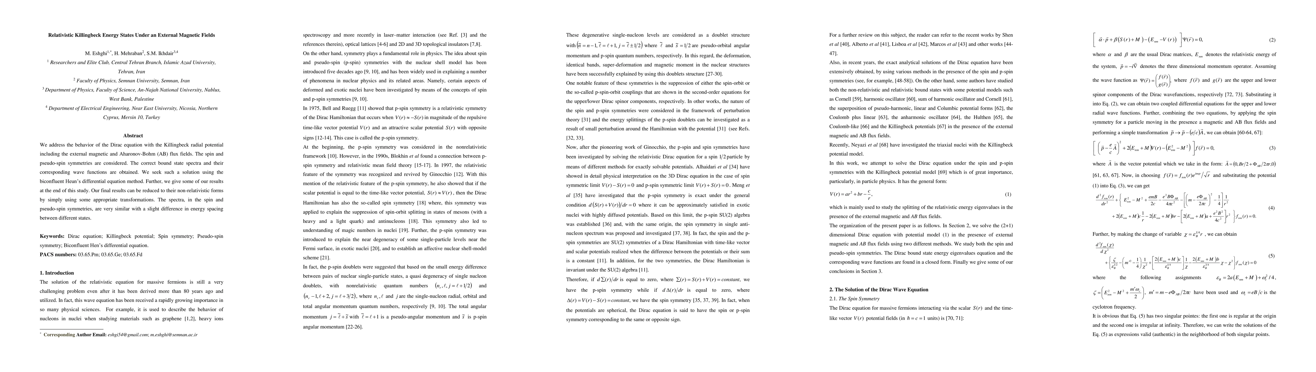 This paper investigates the Dirac equation under the Killingbeck potential with external magnetic and Aharonov-Bohm flux fields, utilizing the biconfluent Heun differential equation method to derive accurate bound state spectra and wave functions. The results show similar spectra in spin and pseudo-spin symmetries with minor energy spacing differences.