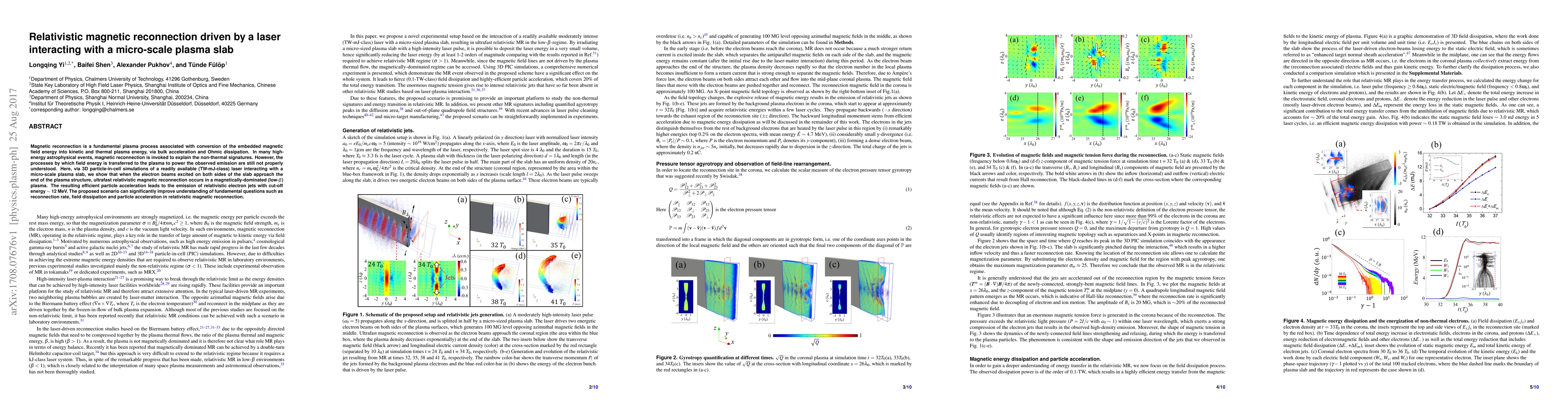 This paper investigates relativistic magnetic reconnection driven by a laser interacting with a micro-scale plasma slab, demonstrating ultrafast reconnection and efficient particle acceleration via 3D simulations. The study highlights the potential for understanding reconnection rate, field dissipation, and particle acceleration in high-energy astrophysical events.