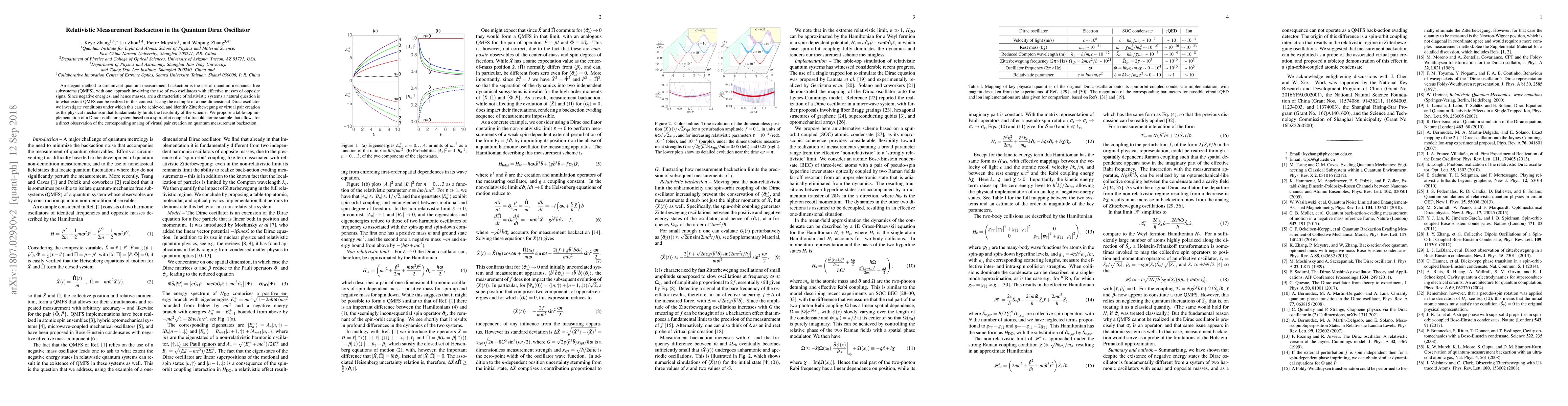 This paper explores the feasibility of quantum measurement backaction circumvention in relativistic systems using a Dirac oscillator. It identifies Zitterbewegung and virtual pair creation as the key limiting factors for this approach and suggests a practical implementation using a spin-orbit coupled ultracold atomic system.
