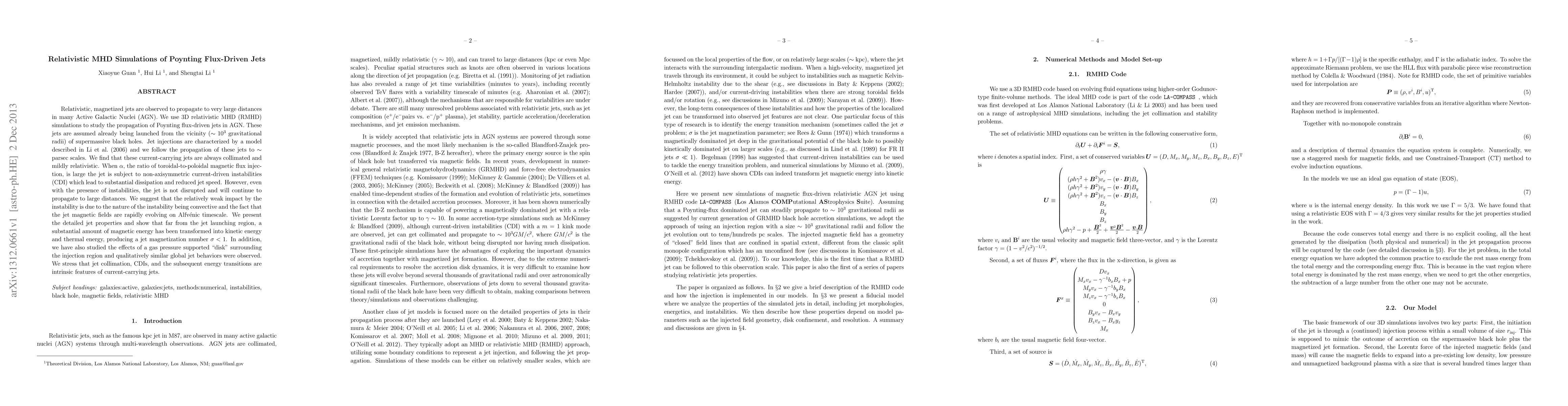 This paper uses 3D relativistic MHD simulations to study Poynting flux-driven jets in AGN, finding that they remain collimated and mildly relativistic despite current-driven instabilities. The magnetic energy transforms into kinetic and thermal energy, resulting in a jet magnetization number $\sigma < 1$.