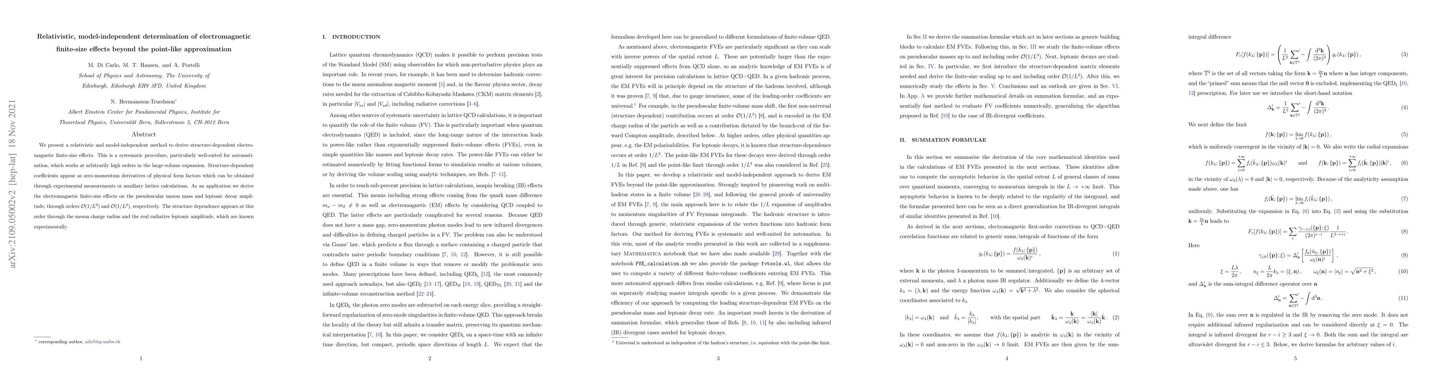 Researchers develop a method to calculate electromagnetic finite-size effects in particles beyond point-like approximation, with applications to pseudoscalar meson mass and leptonic decay amplitude.