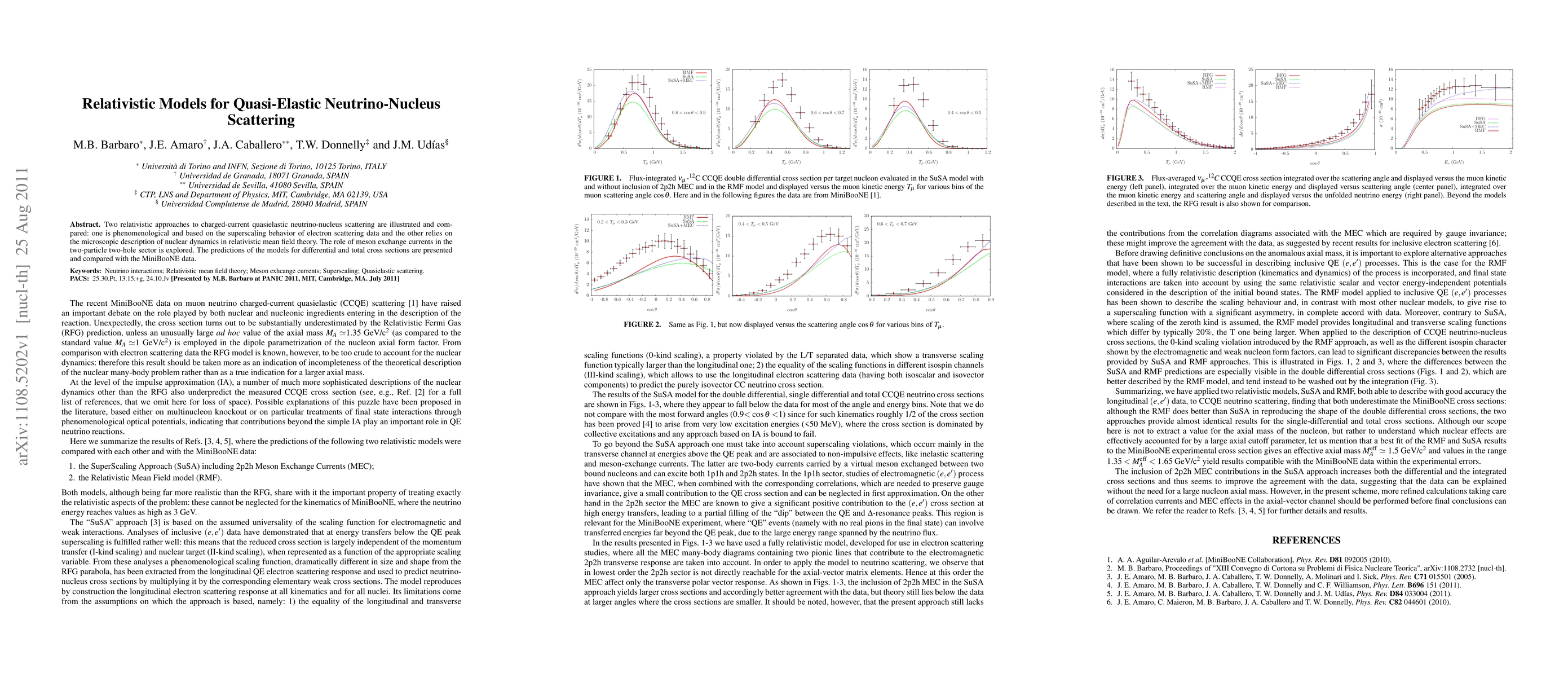 This paper compares two relativistic models for quasi-elastic neutrino-nucleus scattering: a phenomenological model based on superscaling and a microscopic model using relativistic mean field theory. It examines meson exchange currents and evaluates both models' predictions against MiniBooNE data.