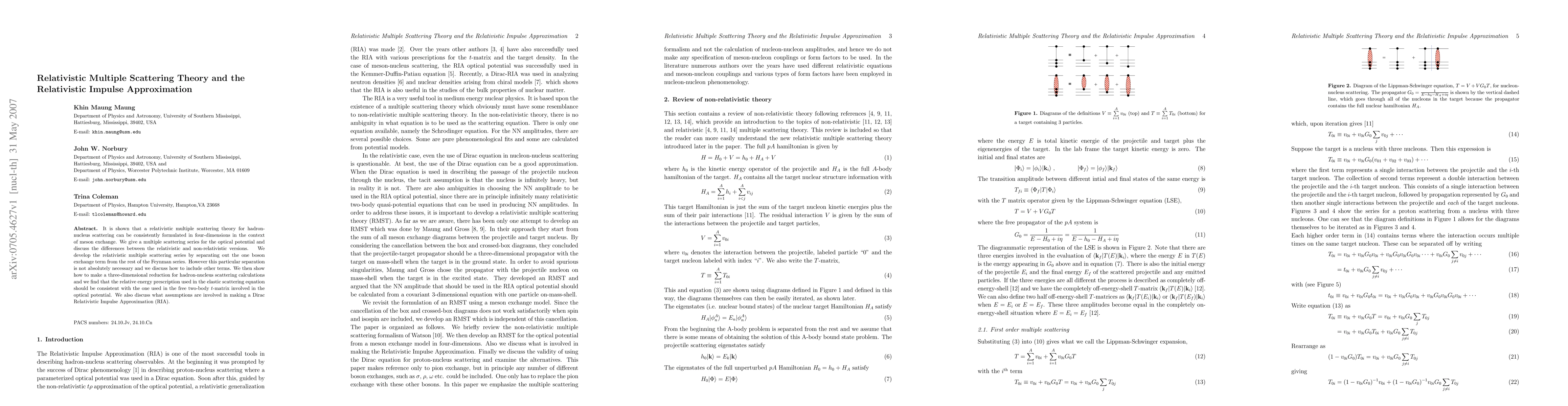 This paper formulates a relativistic multiple scattering theory for hadron-nucleus interactions, presenting a relativistic impulse approximation and comparing it with its non-relativistic counterpart. It also discusses the assumptions and reductions necessary for practical calculations.