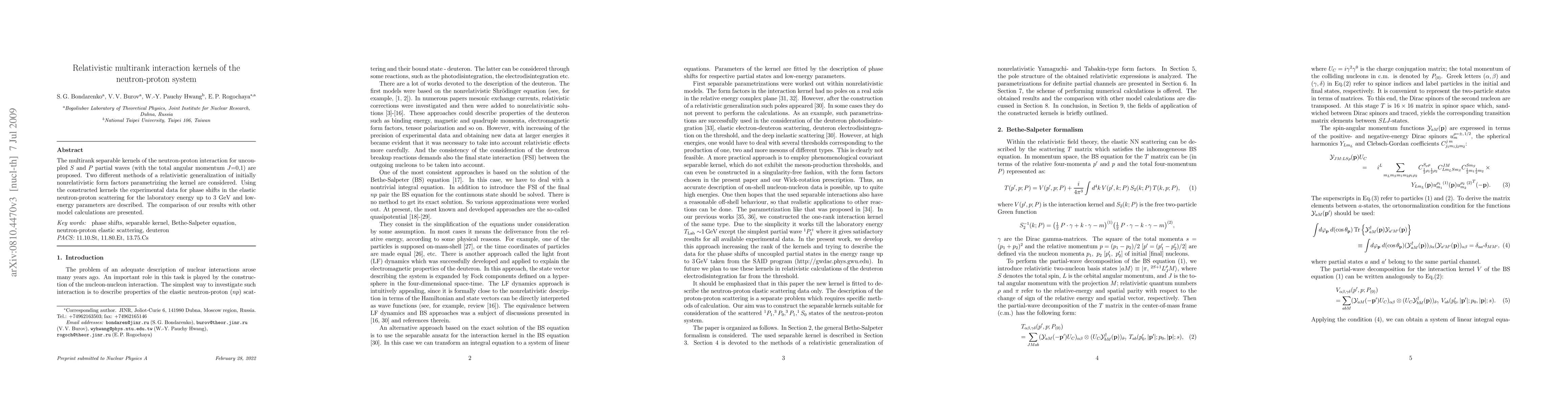 This paper proposes relativistic multirank separable kernels for neutron-proton interactions in uncoupled $S$ and $P$ partial waves, comparing two methods for their relativistic generalization. The constructed kernels effectively describe experimental data for neutron-proton scattering up to 3 GeV laboratory energy.