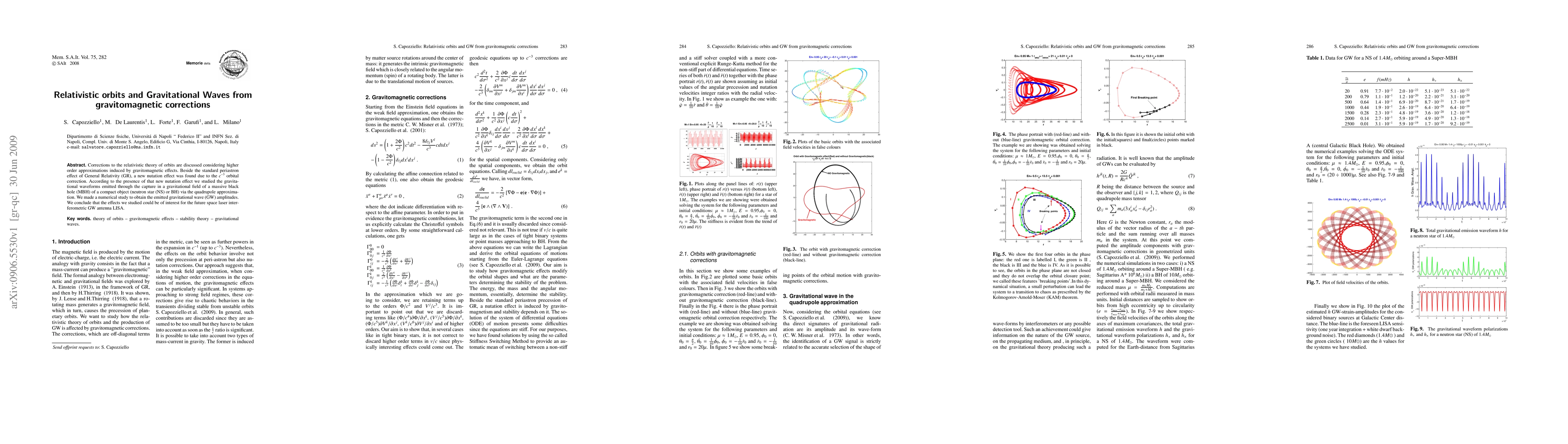 Corrections to the relativistic theory of orbits are discussed considering higher order approximations induced by gravitomagnetic effects. Beside the standard periastron effect of General Relativity (GR), a new nutation effect was found due to the ${\displaystyle c^{-3}}$ orbital correction. According to the presence of that new nutation effect we studied the gravitational waveforms emitted through the capture in a gravitational field of a massive black hole (MBH) of a compact object (neutron star (NS) or BH) via the quadrupole approximation. We made a numerical study to obtain the emitted gravitational wave (GW) amplitudes. We conclude that the effects we studied could be of interest for the future space laser interferometric GW antenna LISA.