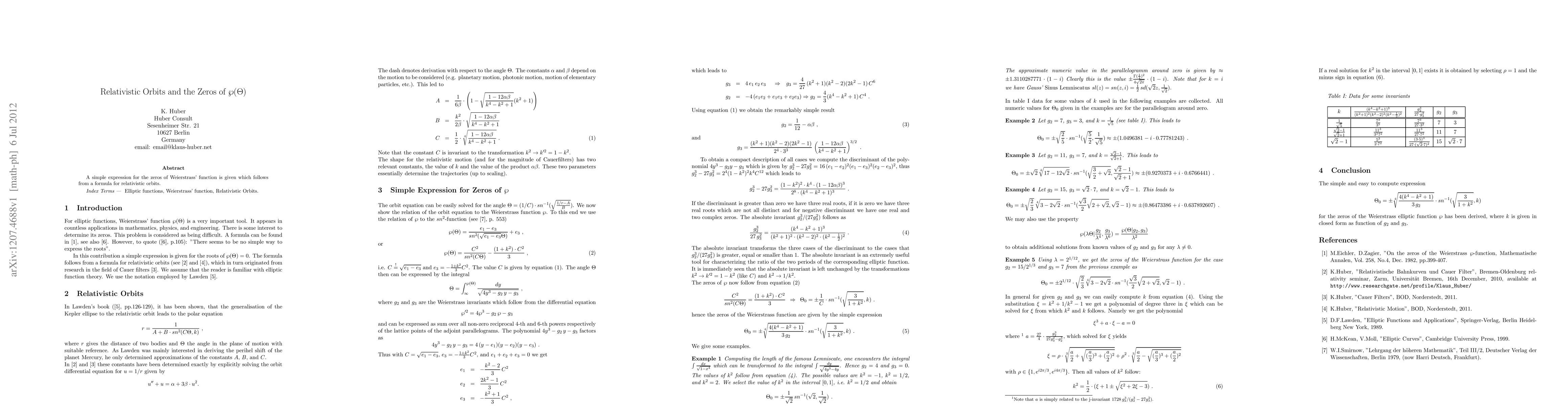 A simple expression for the zeros of Weierstrass' function is given which follows from a formula for relativistic orbits.