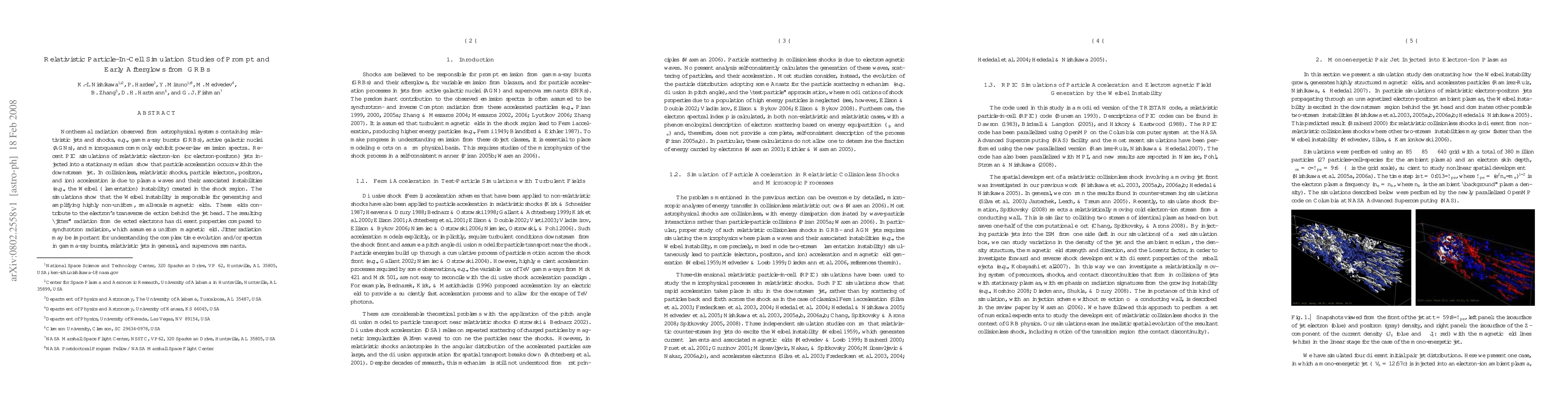 Nonthermal radiation observed from astrophysical systems containing relativistic jets and shocks e.g. gamma-ray bursts (GRBs) active galactic nuclei (AGNs) and microquasars commonly exhibit power-law emission spectra. Recent PIC simulations of relativistic electron-ion (or electron-positron) jets injected into a stationary medium show that particle acceleration occurs within the downstream jet. In collisionless relativistic shocks particle (electron, positron and ion) acceleration is due to plasma waves and their associated instabilities (e.g. the Weibel (filamentation) instability) created in the shock region. The simulations show that the Weibel instability is responsible for generating and amplifying highly non-uniform small-scale magnetic fields. These fields contribute to the electron's transverse deflection behind the jet head. The resulting ``jitter'' radiation from deflected electrons has different properties compared to synchrotron radiation which assumes a uniform magnetic field. Jitter radiation may be important for understanding the complex time evolution and/or spectra in gamma-ray bursts, relativistic jets in general and supernova remnants.