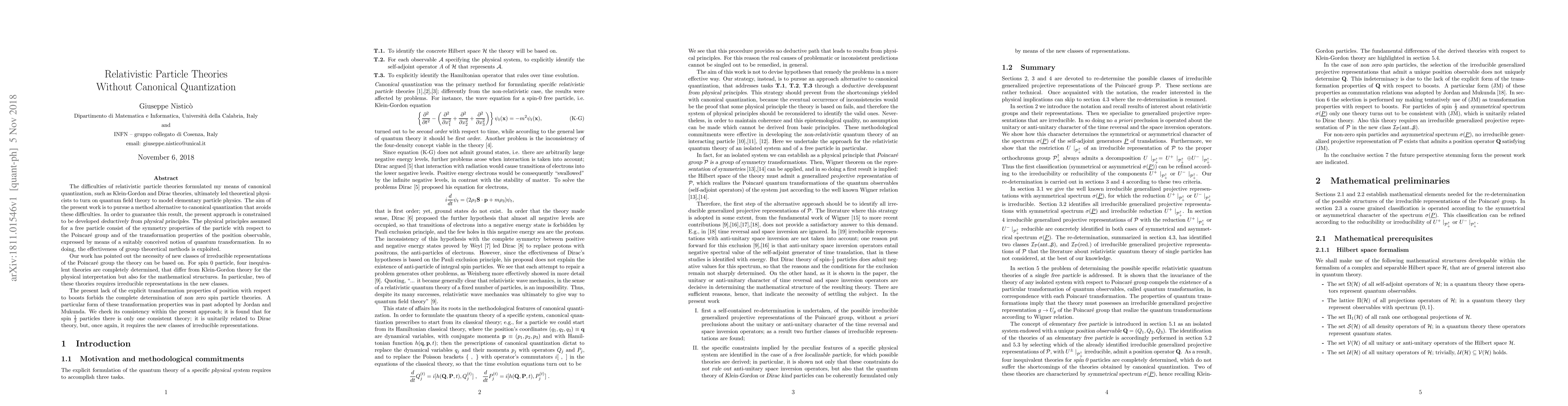 The paper introduces new irreducible representations of the Poincaré group and classifies relativistic particle theories based on these representations, offering an alternative to canonical quantization.