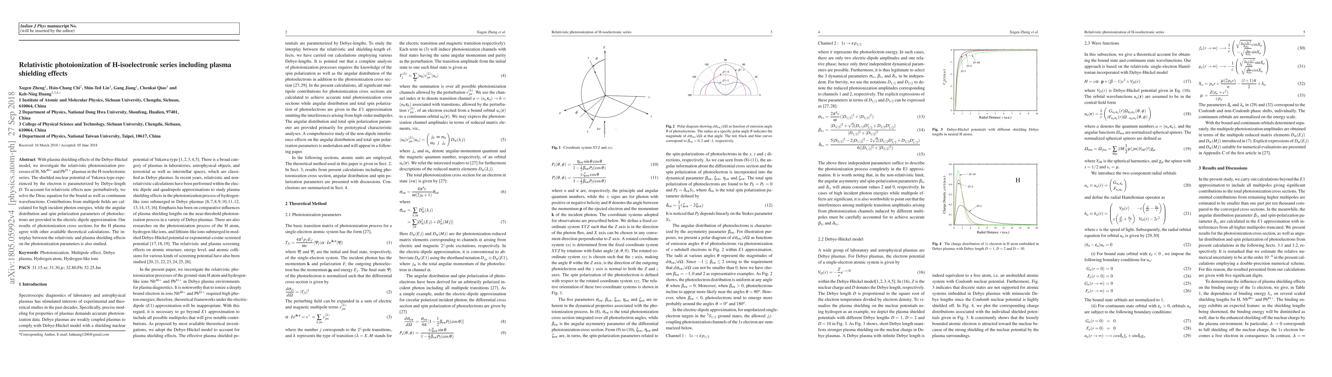 With plasma shielding effects of the Debye-H\"uckel model, we investigate the relativistic photoionization processes of H, Nb$^{40+}$ and Pb$^{81+}$ plasmas in the H-isoelectronic series. The shielded nuclear potential of Yukawa-type experienced by the electron is parameterized by Debye-length $D$. To account for relativistic effects non- perturbatively, we solve the Dirac equation for the bound as well as continuum wavefunctions. Contributions from multipole fields are calculated for high incident photon energies, while the angular distribution and spin polarization parameters of photoelectrons are provided in the electric-dipole approximation. Our results of photoionization cross sections for the H plasma agree with other available theoretical calculations. The interplay between the relativistic and plasma shielding effects on the photoionization parameters is also studied. \keywords{Photoionization, Multipole effect, Debye plasma, Hydrogen atom, Hydrogen-like ions