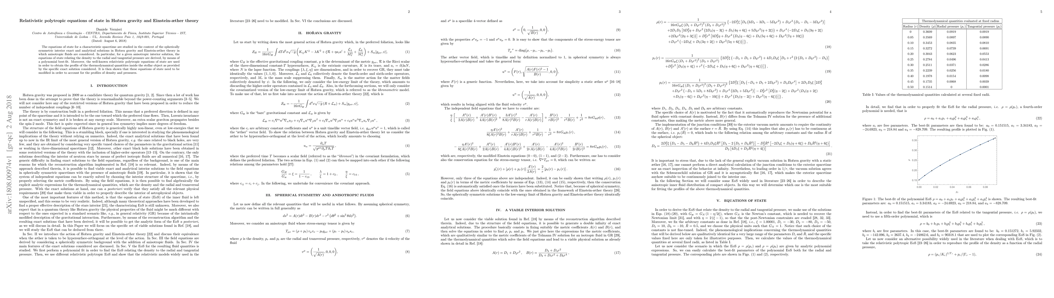 Researchers derived new equations of state for anisotropic fluids in Horava gravity and Einstein-aether theory, showing that relativistic polytropic equations need to be modified to account for the unique profiles of density and pressure in these contexts.