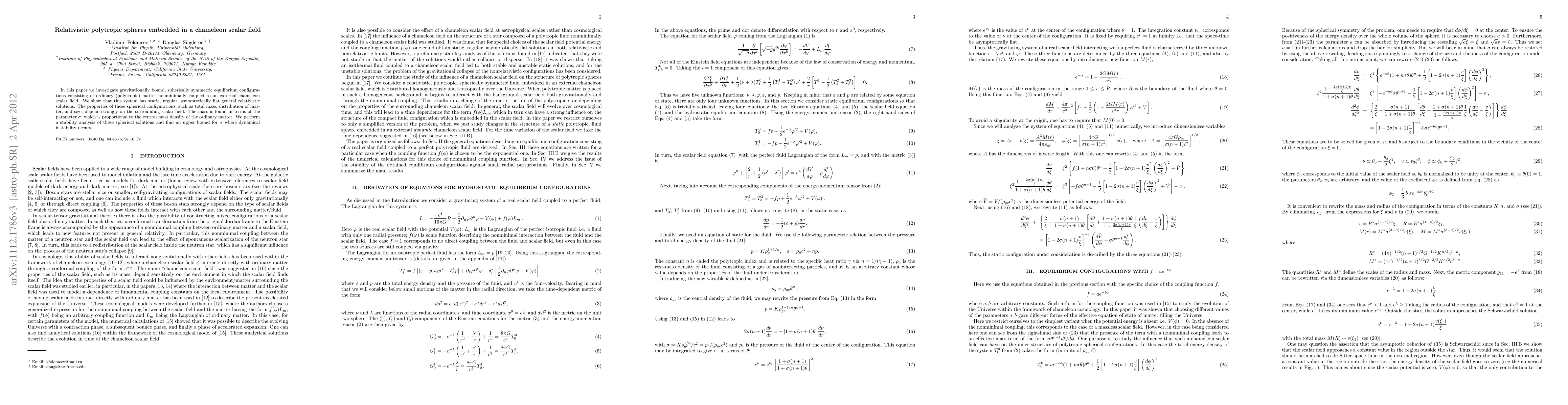 Researchers investigate gravitationally bound spheres of ordinary matter embedded in a chameleon scalar field, finding that their mass depends on the surrounding field strength and stability is affected by a critical parameter called sigma.