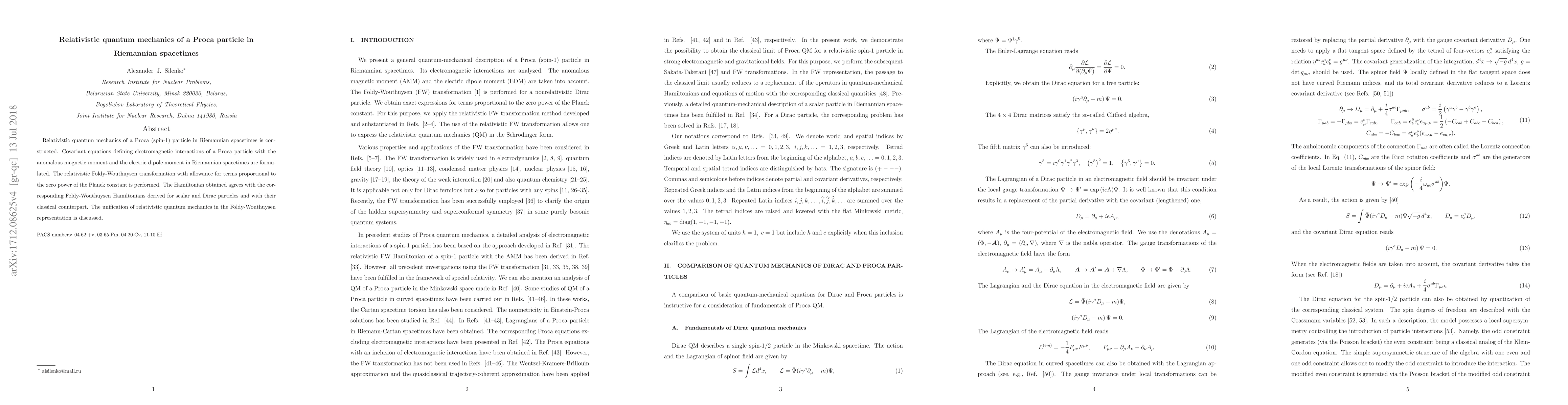 This paper constructs relativistic quantum mechanics for a Proca particle in Riemannian spacetimes, formulating covariant equations for electromagnetic interactions, including anomalous magnetic and electric dipole moments. It applies the Foldy-Wouthuysen transformation and shows that the resulting Hamiltonian aligns with those derived for scalar and Dirac particles.