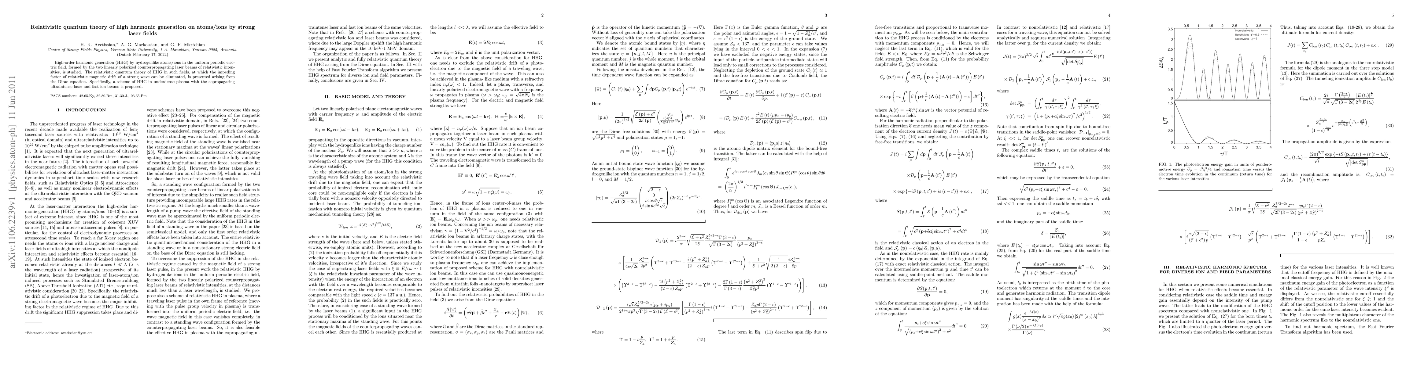 This paper presents a relativistic quantum theory for high-order harmonic generation (HHG) in hydrogenlike atoms/ions subjected to strong laser fields, eliminating the relativistic magnetic drift effect. It proposes a scheme for HHG in underdense plasma using copropagating ultraintense laser and fast ion beams.