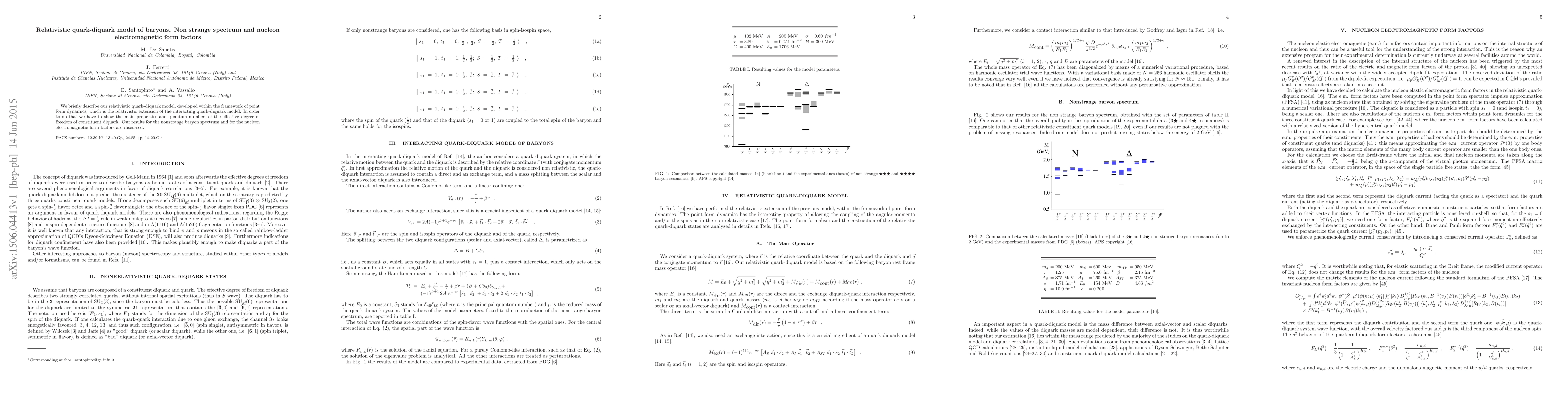 This paper presents a relativistic quark-diquark model within point form dynamics, detailing the nonstrange baryon spectrum and nucleon electromagnetic form factors. It focuses on the properties and quantum numbers of the constituent diquark.