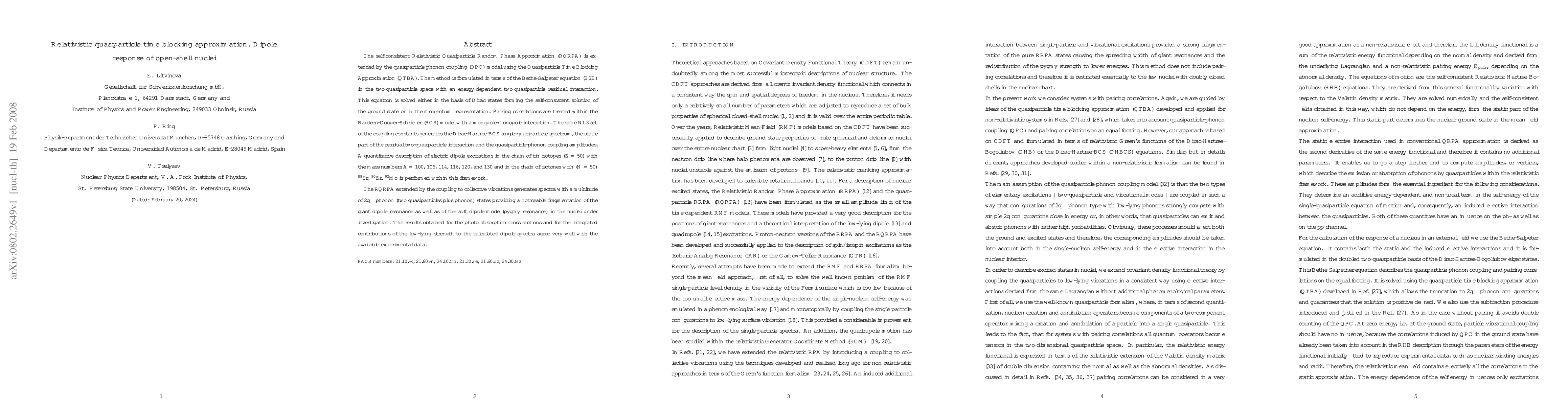 This paper extends the Relativistic Quasiparticle Random Phase Approximation (RQRPA) with the Quasiparticle Time Blocking Approximation (QTBA) to describe the dipole response of open-shell nuclei. The method successfully reproduces the fragmentation of the giant dipole resonance and soft dipole mode in the studied tin and isotone chains, matching experimental data closely.