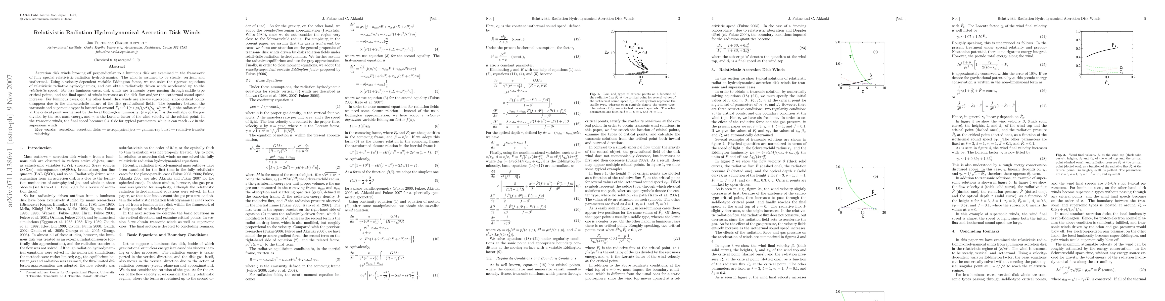 This paper investigates relativistic radiation hydrodynamic accretion disk winds using special relativistic theory. It finds that winds can reach relativistic speeds, with transonic winds transitioning to supersonic as luminosity increases, driven by the gravitational fields and radiative flux.
