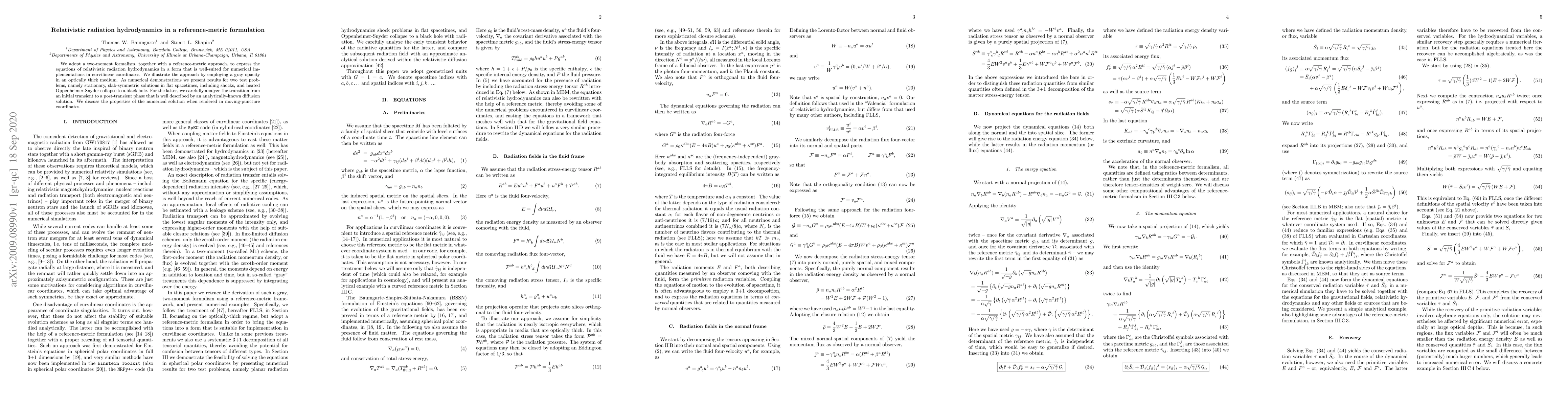We adopt a two-moment formalism, together with a reference-metric approach, to express the equations of relativistic radiation hydrodynamics in a form that is well-suited for numerical implementations in curvilinear coordinates. We illustrate the approach by employing a gray opacity in an optically thick medium. As numerical demonstrations we present results for two test problems, namely stationary, slab-symmetric solutions in flat spacetimes, including shocks, and heated Oppenheimer-Snyder collapse to a black hole. For the latter, we carefully analyze the transition from an initial transient to a post-transient phase that is well described by an analytically-known diffusion solution. We discuss the properties of the numerical solution when rendered in moving-puncture coordinates.