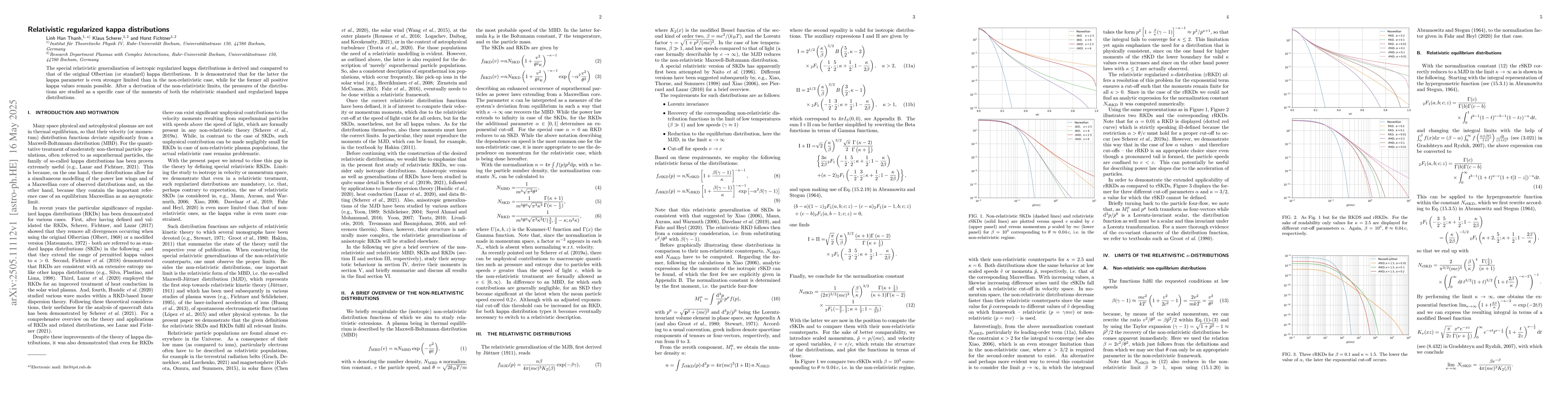 The paper derives the special relativistic generalization of isotropic regularized kappa distributions and compares it to the original Olbertian (or standard) kappa distributions.