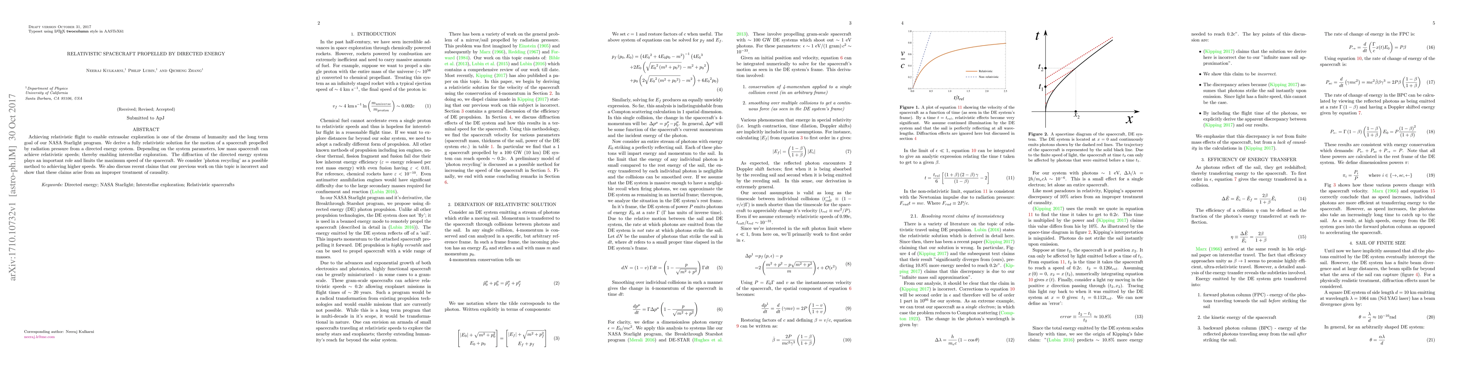 Achieving relativistic flight to enable extrasolar exploration is one of the dreams of humanity and the long term goal of our NASA Starlight program. We derive a fully relativistic solution for the motion of a spacecraft propelled by radiation pressure from a directed energy system. Depending on the system parameters, low mass spacecraft can achieve relativistic speeds; thereby enabling interstellar exploration. The diffraction of the directed energy system plays an important role and limits the maximum speed of the spacecraft. We consider 'photon recycling' as a possible method to achieving higher speeds. We also discuss recent claims that our previous work on this topic is incorrect and show that these claims arise from an improper treatment of causality.
