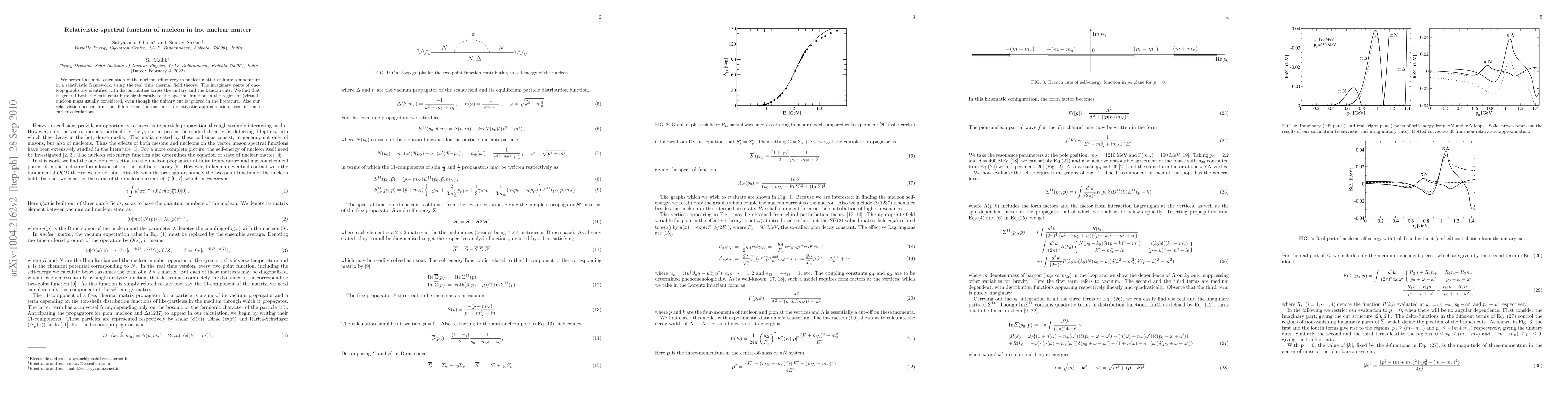 This paper calculates the nucleon self-energy in hot nuclear matter at finite temperature using relativistic real-time thermal field theory, revealing that both unitary and Landau cuts significantly contribute to the spectral function, unlike previous non-relativistic approximations.