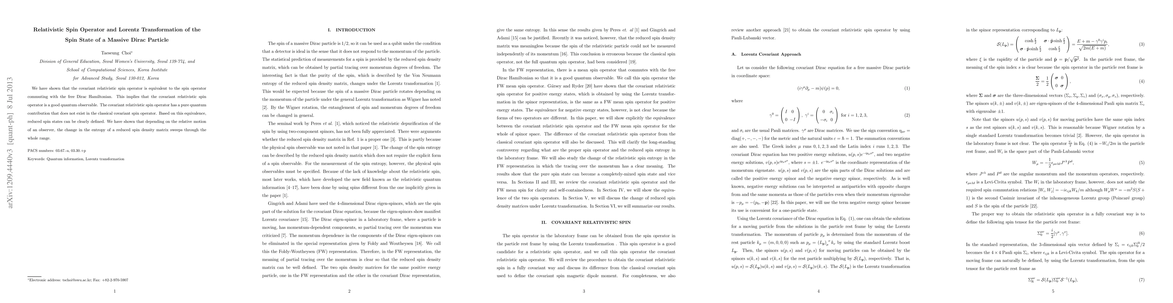 The paper shows that a relativistic spin operator is equivalent to a quantum observable for massive Dirac particles, revealing new insights into spin states and entropy changes.