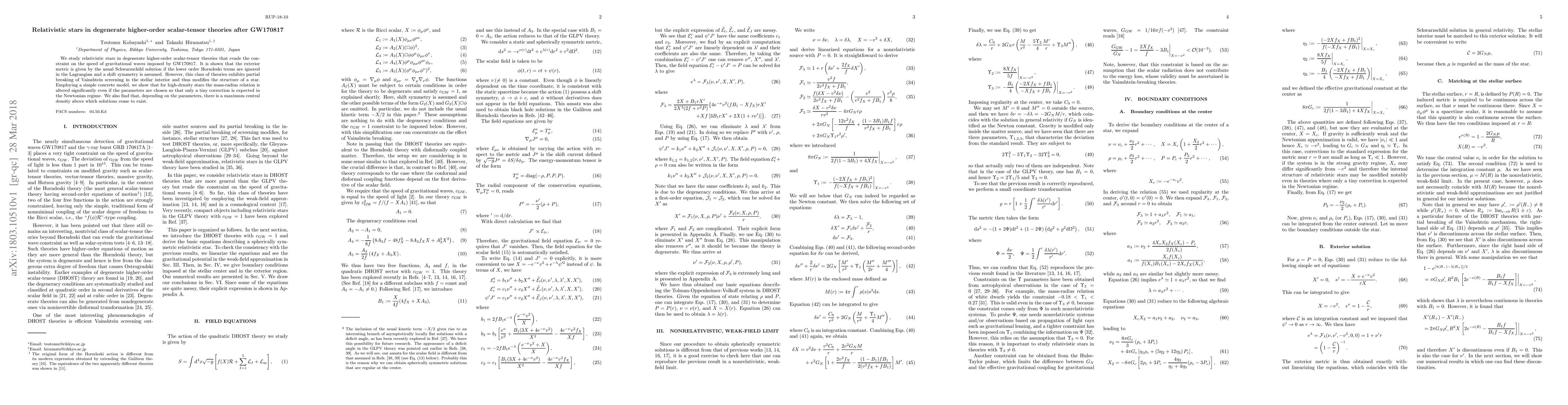 This paper examines relativistic stars within higher-order scalar-tensor theories that bypass gravitational wave speed constraints from GW170817. It reveals that while exterior metrics resemble Schwarzschild, interior modifications due to partial breaking of Vainshtein screening significantly alter high-density star mass-radius relations, even with minimal Newtonian corrections, and identifies a maximum central density beyond which solutions are no longer viable.