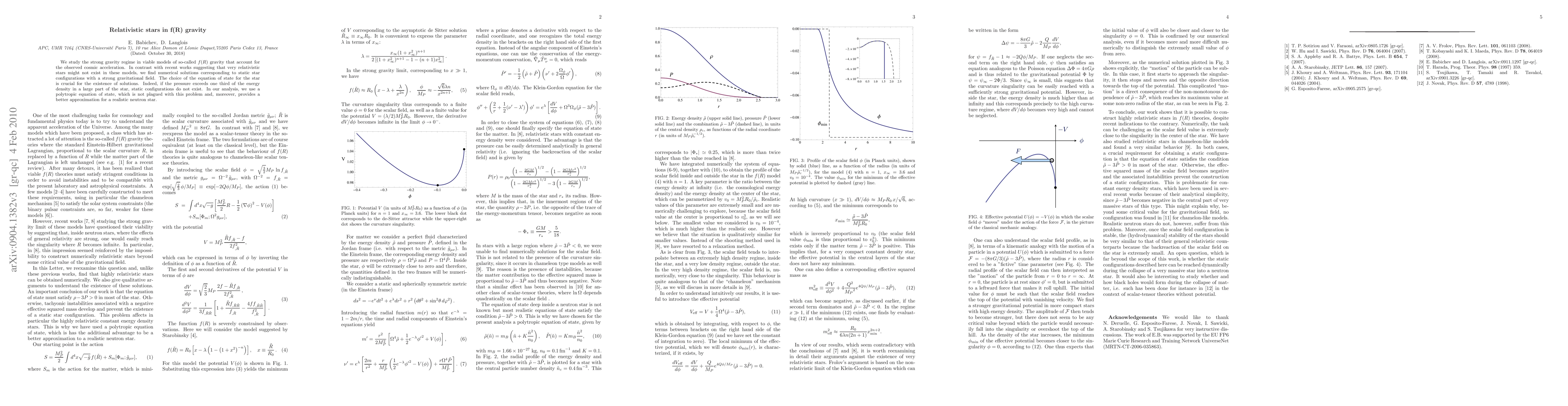 This paper investigates relativistic stars in f(R) gravity models, finding numerical solutions for static star configurations with strong gravitational fields. The study highlights that the equation of state is crucial, with static configurations only existing if pressure does not exceed one third of the energy density in the star, using a polytropic equation of state for better neutron star approximation.